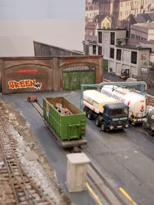 De fabrieksomgeving is voorzien van wat kleine Details. Het moet allemaal nog wat begroend worden, hekwerk tussen rails en fabriek. Maar deels zie je het straks niet meer.