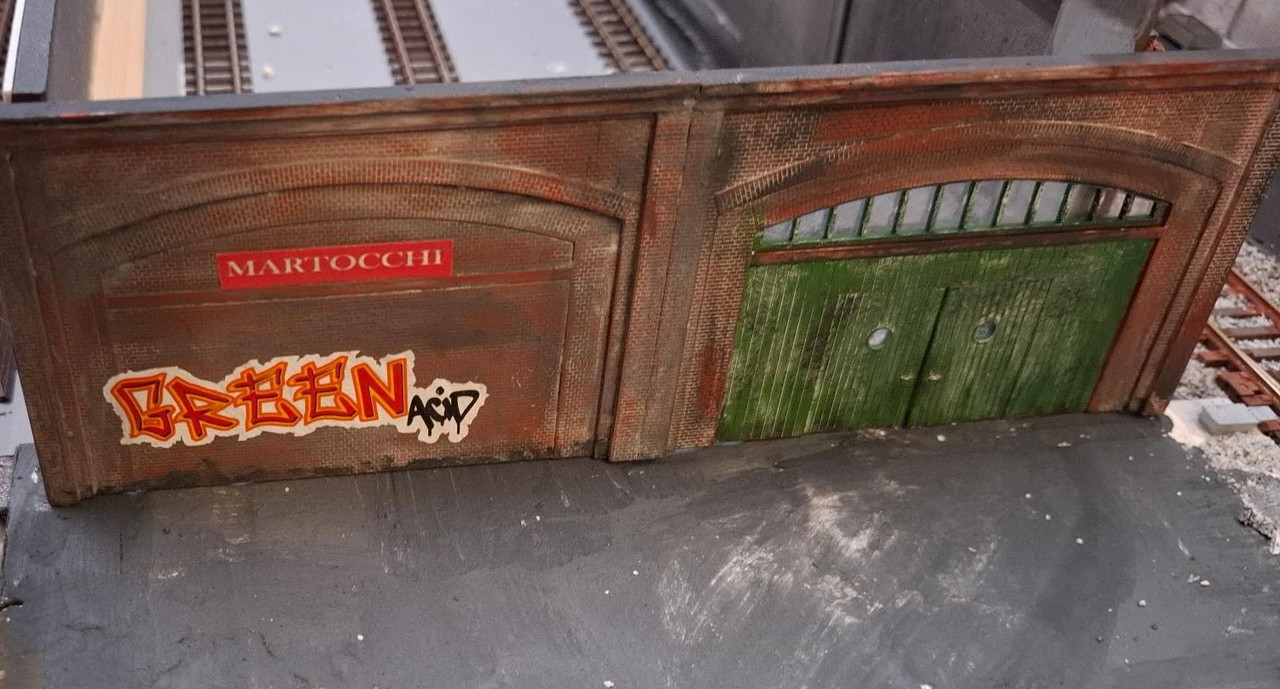 Het Fiddle Yard wil ik omringen met een fabrieksmuur imitatie. Daardoor zie je de gereedstaande wagens wat minder goed.