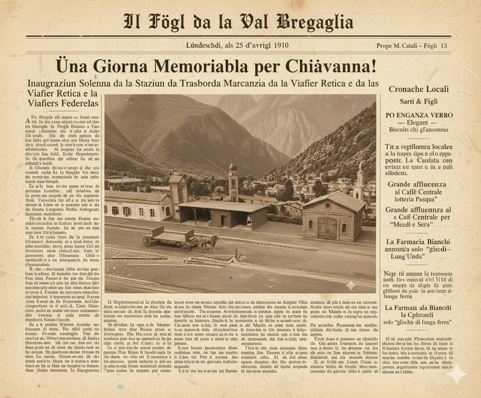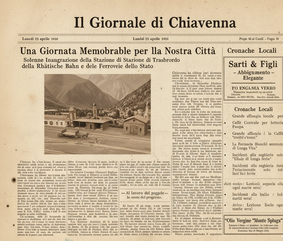 . Op de site de krantenverslagen van de opening op 24 april 1910 van het goederenstation in Chiavenna.