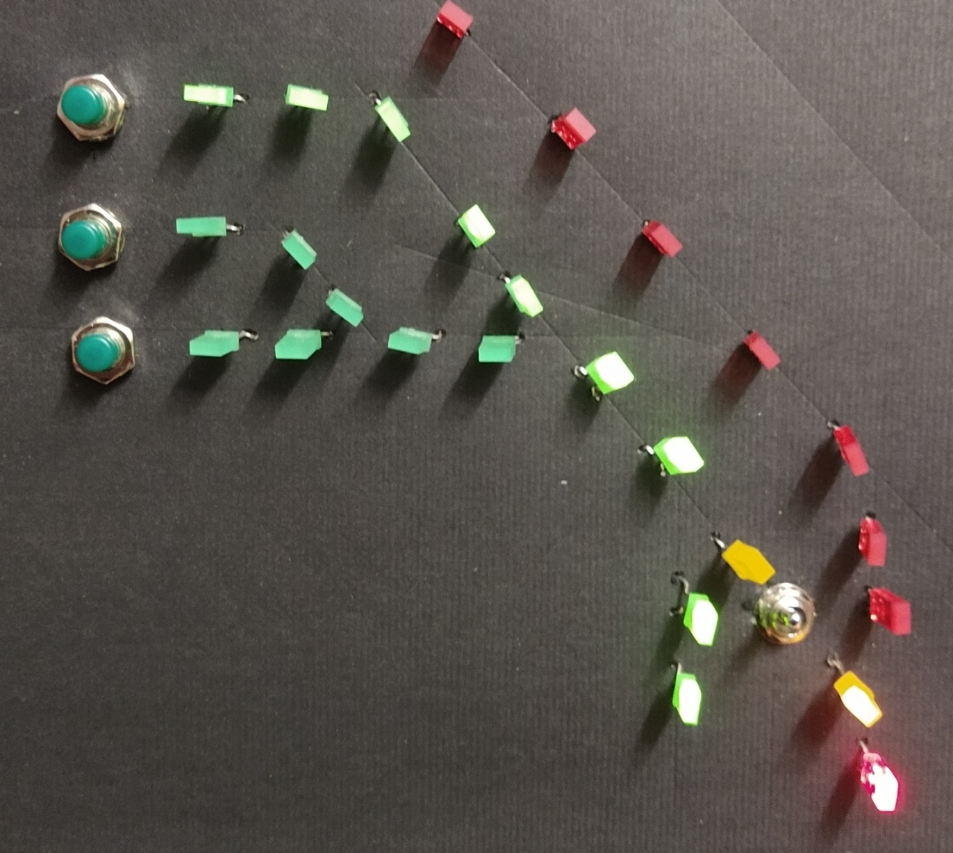 En als voorproefje hier alvast de 8 in te stellen rijwegen, te bedienen en zichtbaar te maken door 1 schakelaar en 5 vertrek / aankomst knopjes.