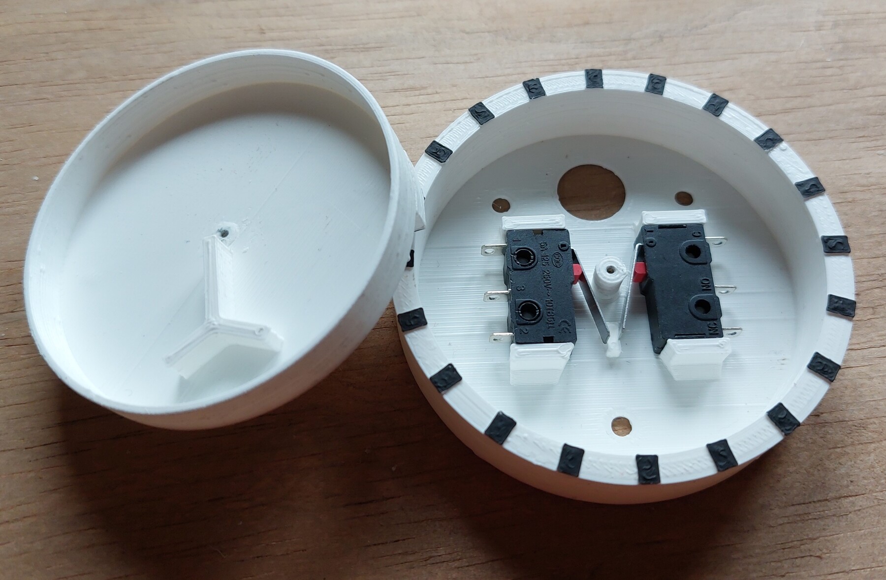 De bediening kan bestaan uit simpele drukknopjes voor linksom/rechtsom, maar ik heb er naar voorbeeld van een Fleischmann 6914 toch iets leuks van gemaakt, gewoon omdat het kan  :)