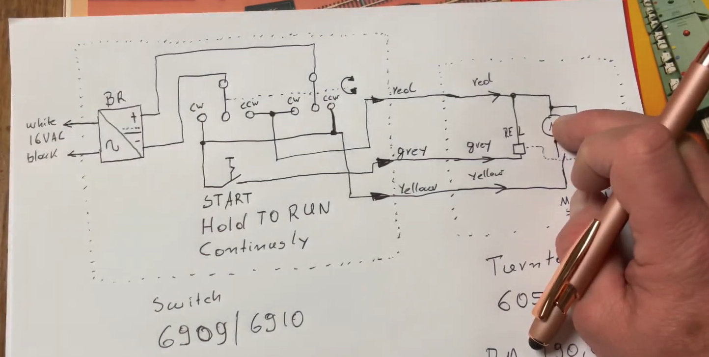 Maar de motor gaat pas draaien als het relais kort bekrachtigd wordt via de grijze draad. Er zit een mechaniekje in de brug die het relais dan vasthoudt totdat de eerstvolgende spooraansluiting bereikt is.
