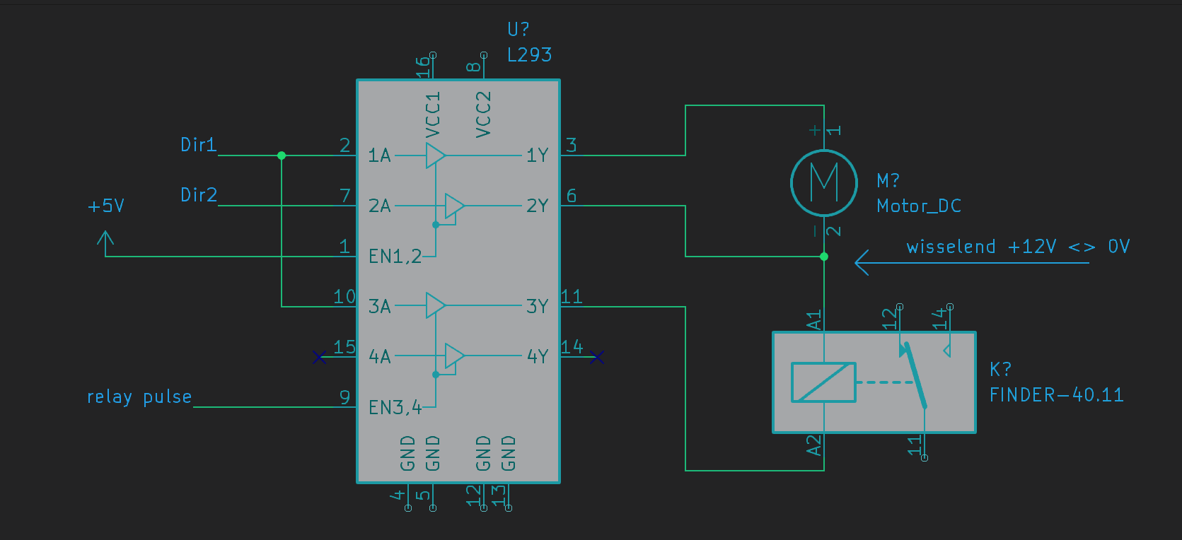 De aansturing van relais + motor heb ik werkend gekregen. Weliswaar nu alleen nog in een proefopstelling met een motor en een relais uit mijn Roco draaischijf.