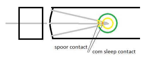 Die sleepcontacten zelf komen precies in het midden. Er zijn er ook maar 2. Als ik de schijf draai op welke manier dan ook, zal alleen het aangesloten spoor spanning hebben. En met een cab control schakelaar kan ik ook dat spoor uitschakelen.