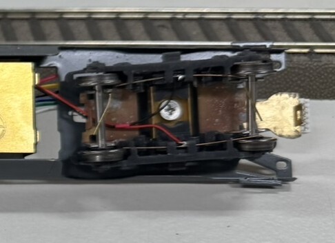 Je ziet hier de messingdraad die ik heb gebruikt om de assen op te sluiten.