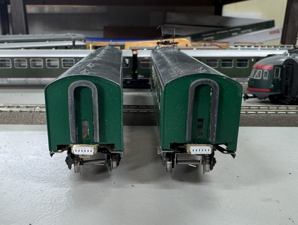 Ik vond de draden aan de stekkers niet erg soepel. Tijdens de proefritten zonder de interieur delen ondervond ik geen problemen. Toen ik de interieurdelen wel had geplaatst ondervond het mechaniek toch teveel weerstand en de ontsporingen waren weer volop aanwezig. Goede raad is duur dus radicaal alle draden van het treinstel afgeknipt en vervangen door soepel decoderdraad in twee dagen tijd. Daarna geen problemen meer ondervonden.