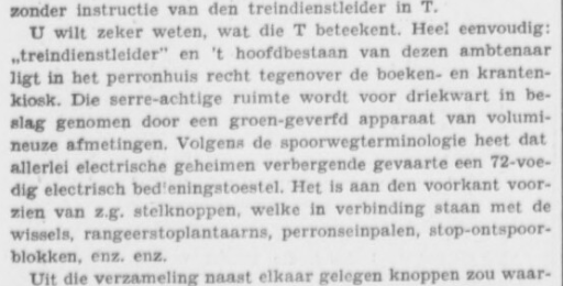 Een oud kranten artiekel met de uitleg waar de T voor staat, nl treindienstleider uit 1933....  van stad en land ...