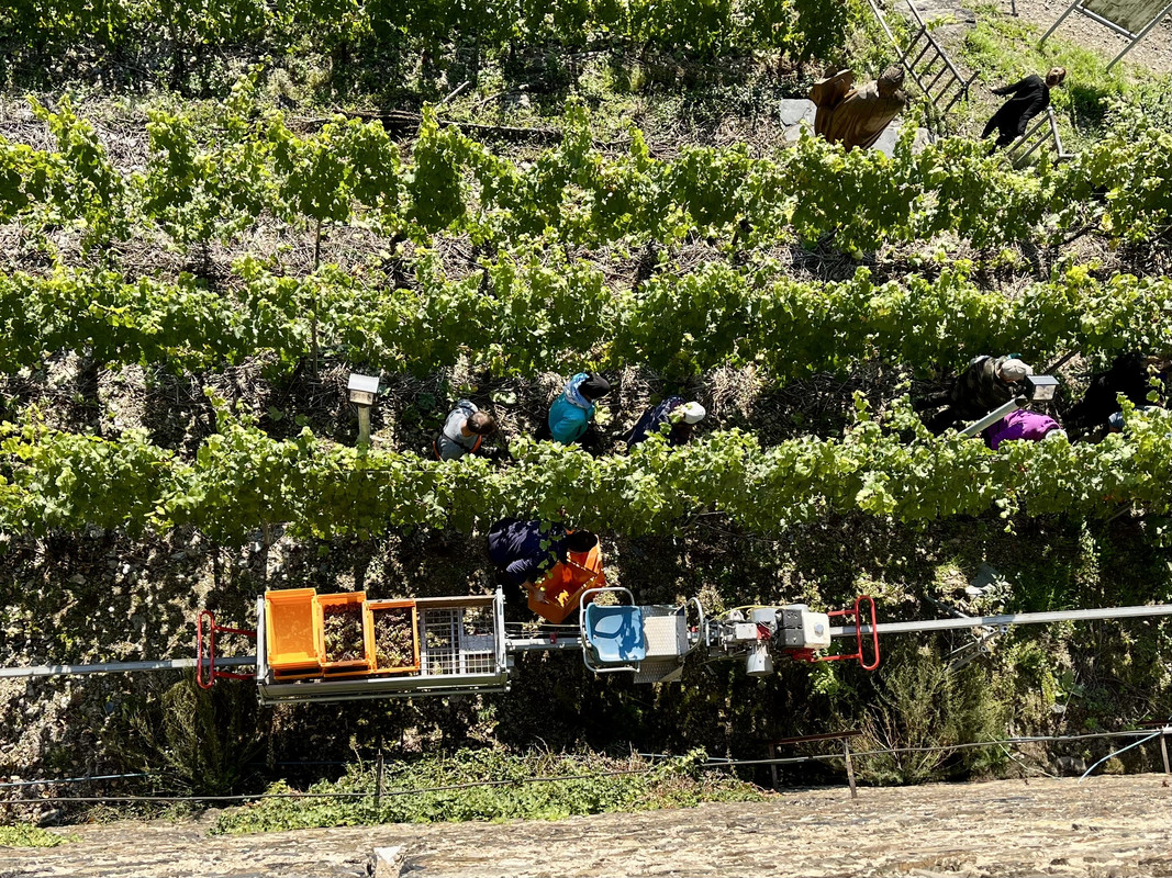 Mijn zoon spotte in Duitsland een monorail die door de wijngaarden op de berghelling reed. Uiteraard voor het vervoer van de geplukte druiven.