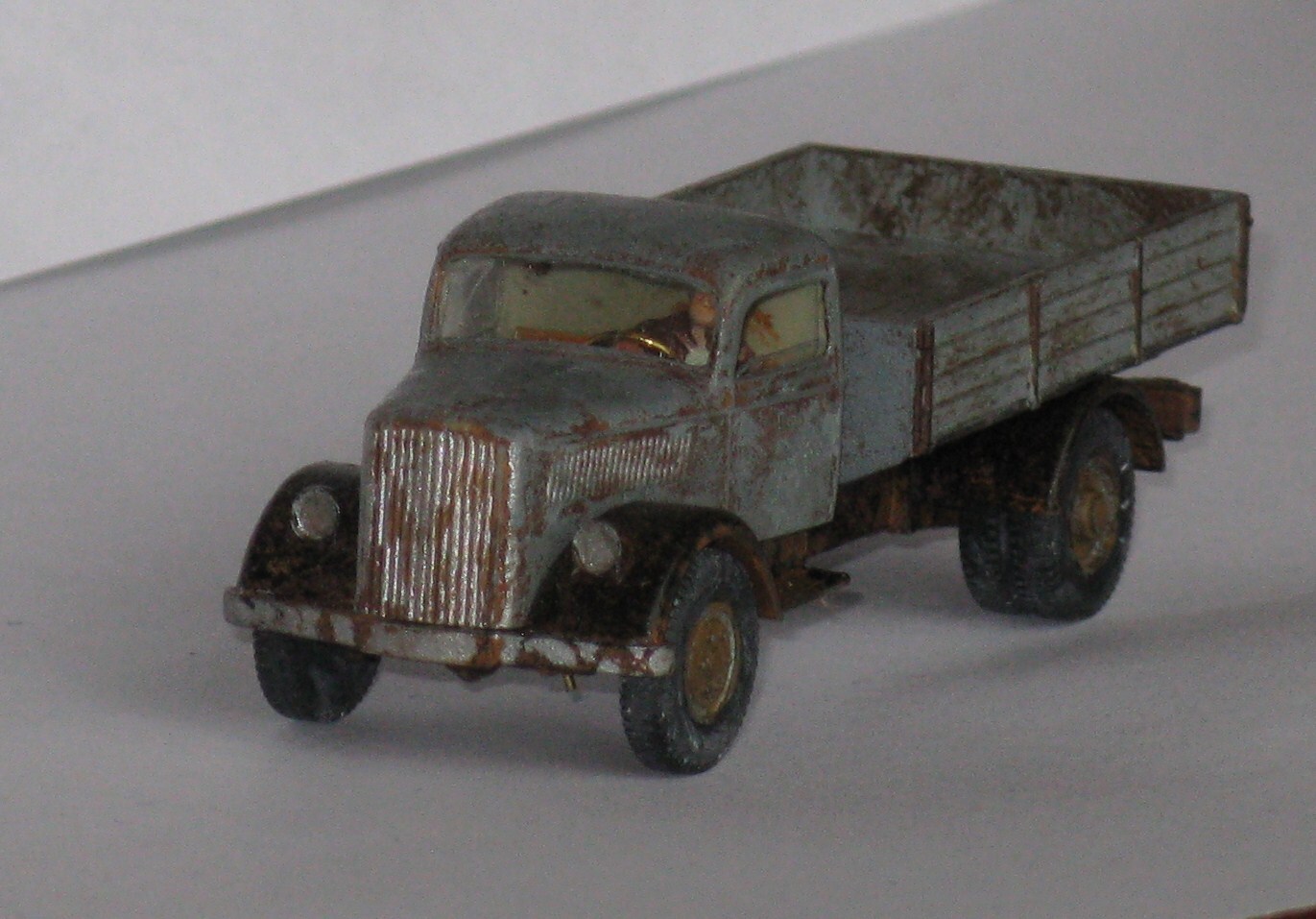 Mijn allereerste vrachtautoproject. Ruim 16 jaar geleden gedaan, een Opel blitz van Wiking. Andere raampjes er in, ander stuurtje, Bestuurder toegevoegd en het hele autootje geschilderd.