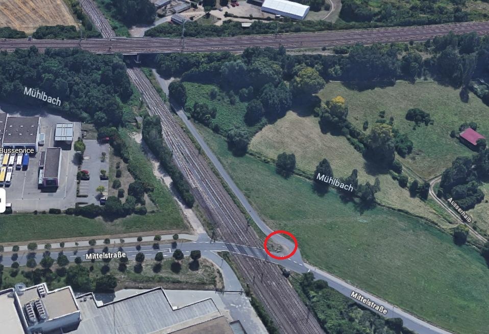 Op de achtergrond de lijn Frankfurt - Mannheim.