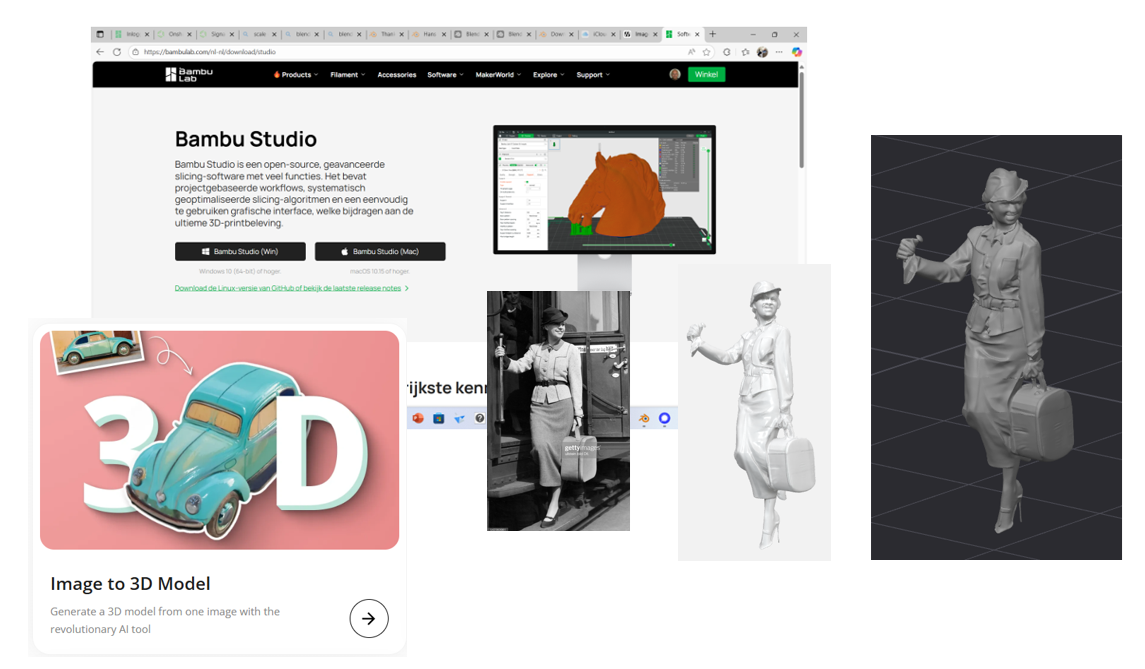 Als voorbeeld gebruik ik een foto van een vrouw die in de trein stapt, en maak er een klein 3D printbaar figuurtje van.