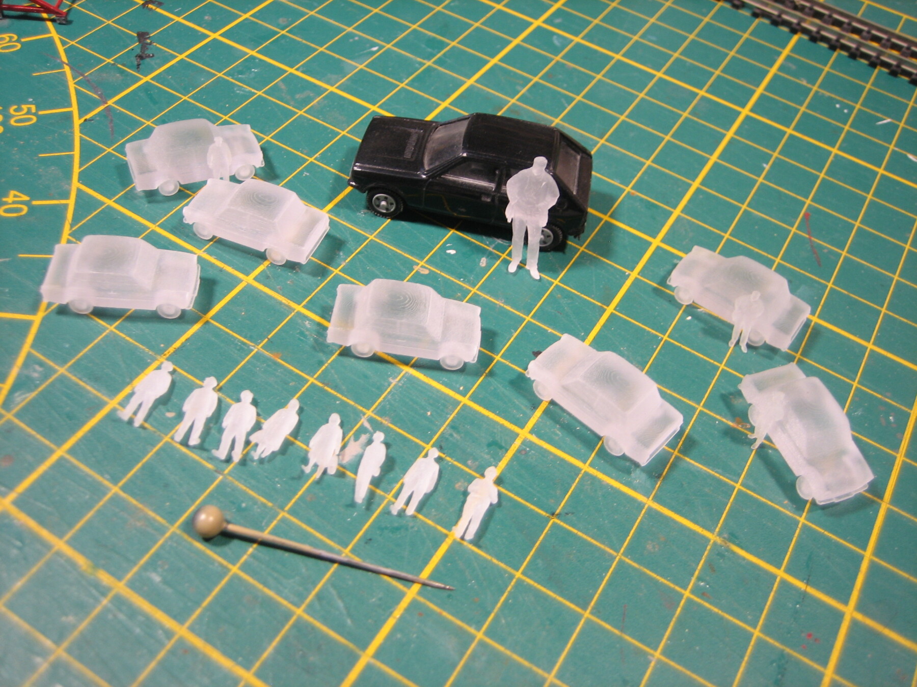 Ik heb mijn 3D printjes van figuurtjes en DAFjes in het nieuwe Shapeways materiaal Crystal Fine Detail Plastic (de vervanger van FUD) deze week opgehaald. Alles in schaal N en 1 printje in h0 en zo zien ze eruit:
