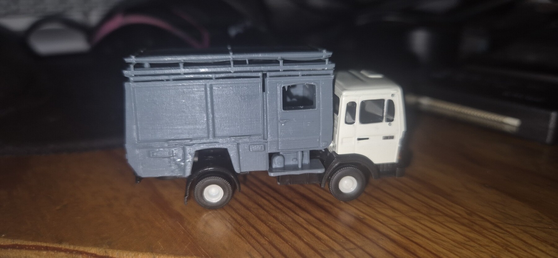 Om mijn korps Rotterdamse hulpdiensten uit te breiden, een plaatje van de brandweer wagen met makerlab omgezet naar een stl file, daarna door Meshlab gehaald om het te verkleinen en vervolgens nabewerkt met Tinkercad. Voorlopig kan ik met het resultaat leven 🙂