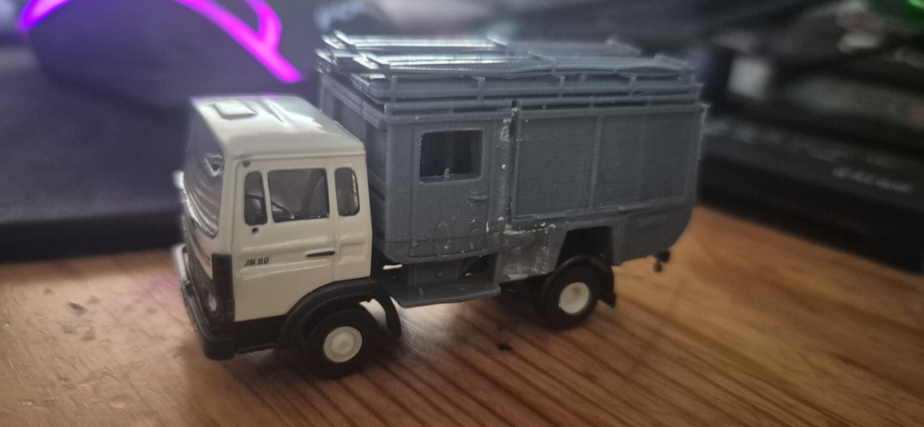 Ik heb mijn 3D printjes van figuurtjes en DAFjes in het nieuwe Shapeways materiaal Crystal Fine Detail Plastic (de vervanger van FUD) deze week opgehaald. Alles in schaal N en 1 printje in h0 en zo zien ze eruit: