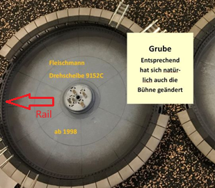 Nog een optie om een extra draad naar de brug te krijgen, maar die vraagt wel een aanpassing in de kuil van de draaischijf: Vervang de plastic ronde rails in de kuip voor een van messing/metaal of een anders geleidend materiaal.