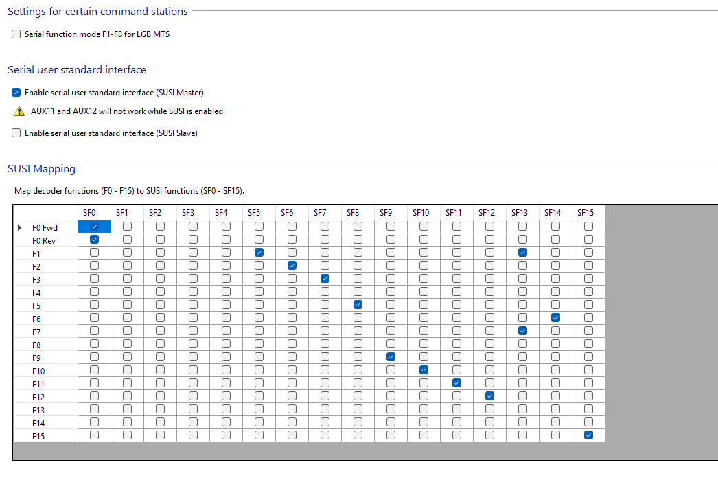 Standaard staat de SUSI bij de lokpilot/sound UIT en moet daarmee aan
