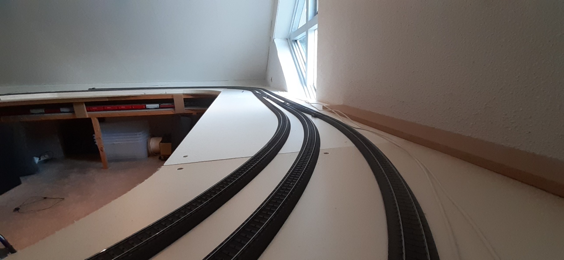 Eventueel zou ik met flexrails kunnen werken, dan zouden de bochten iets vloeiender gelegd kunnen worden.