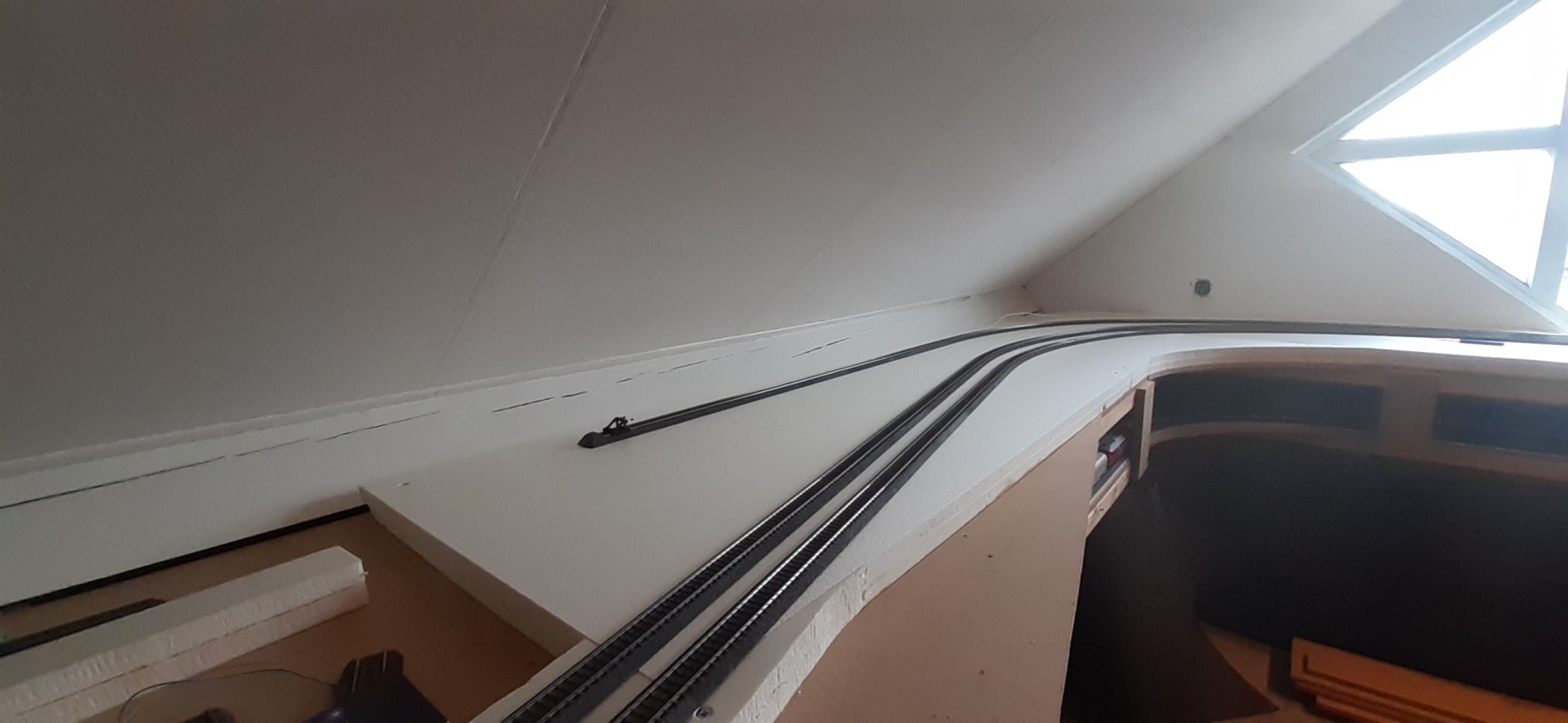 Binnen, op zolder. Alleen daar ligt nu nog mijn H0 baan: