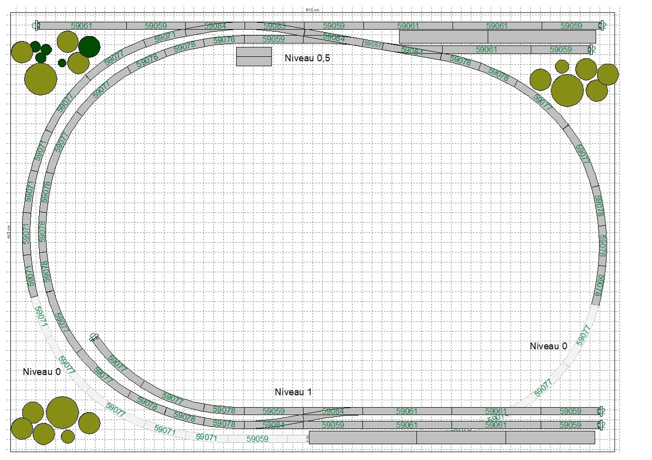 Het station aan de noordkant ligt op niveau 0,5, oftewel +/- 10cm. Dan daalt het ene spoor richting de 'tunnel' met 10cm en het spoor naar het hoger gelegen kopstation stijgt met 10cm.