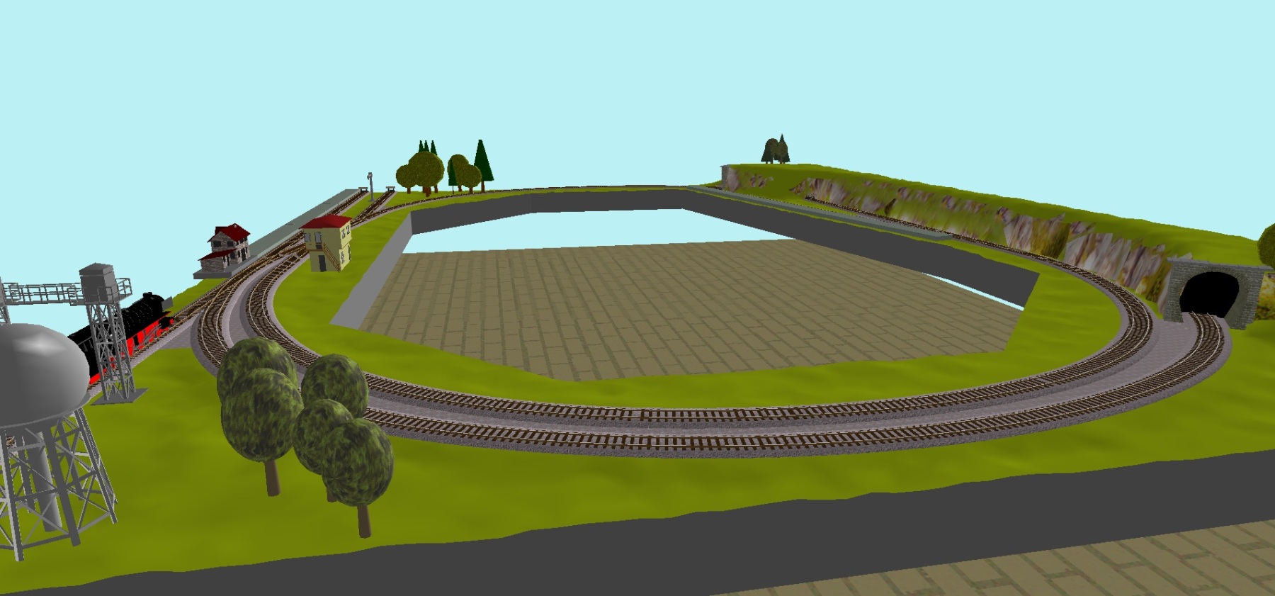 Spoor 1 pendelbaan, maar dan rond (1:32) door rjr