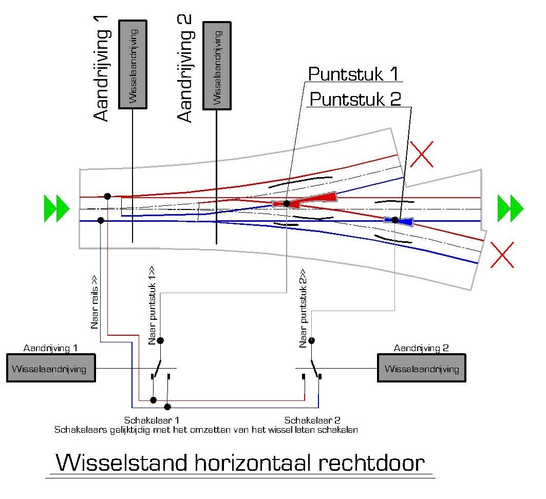 Het wissel wordt bediend met de magneet spoelen 2x Roco 40296.