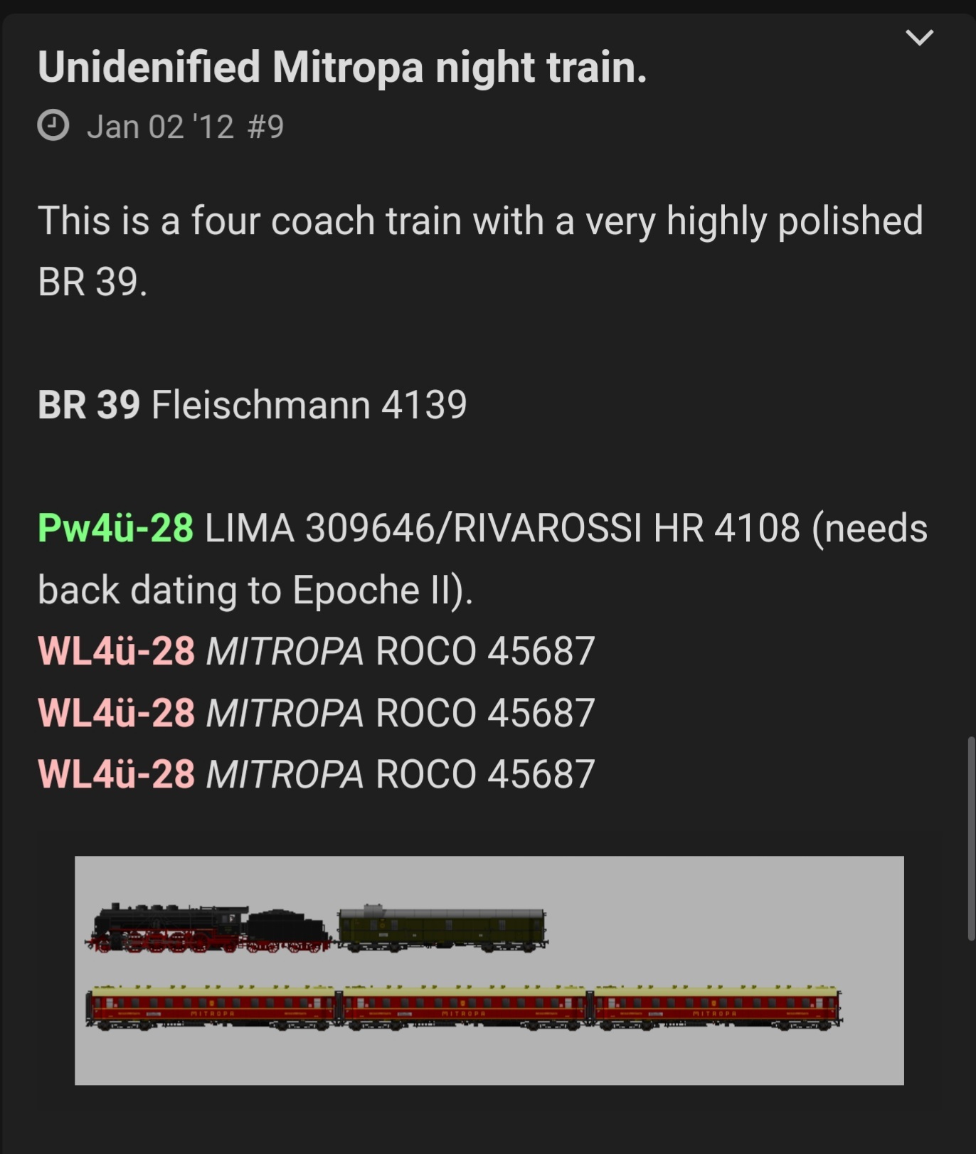 Die met 3 slaapwagens en de baureihe 39 heb ik ook in een boek staan maar das zwart wit en niet te zien of het creme of grijs was