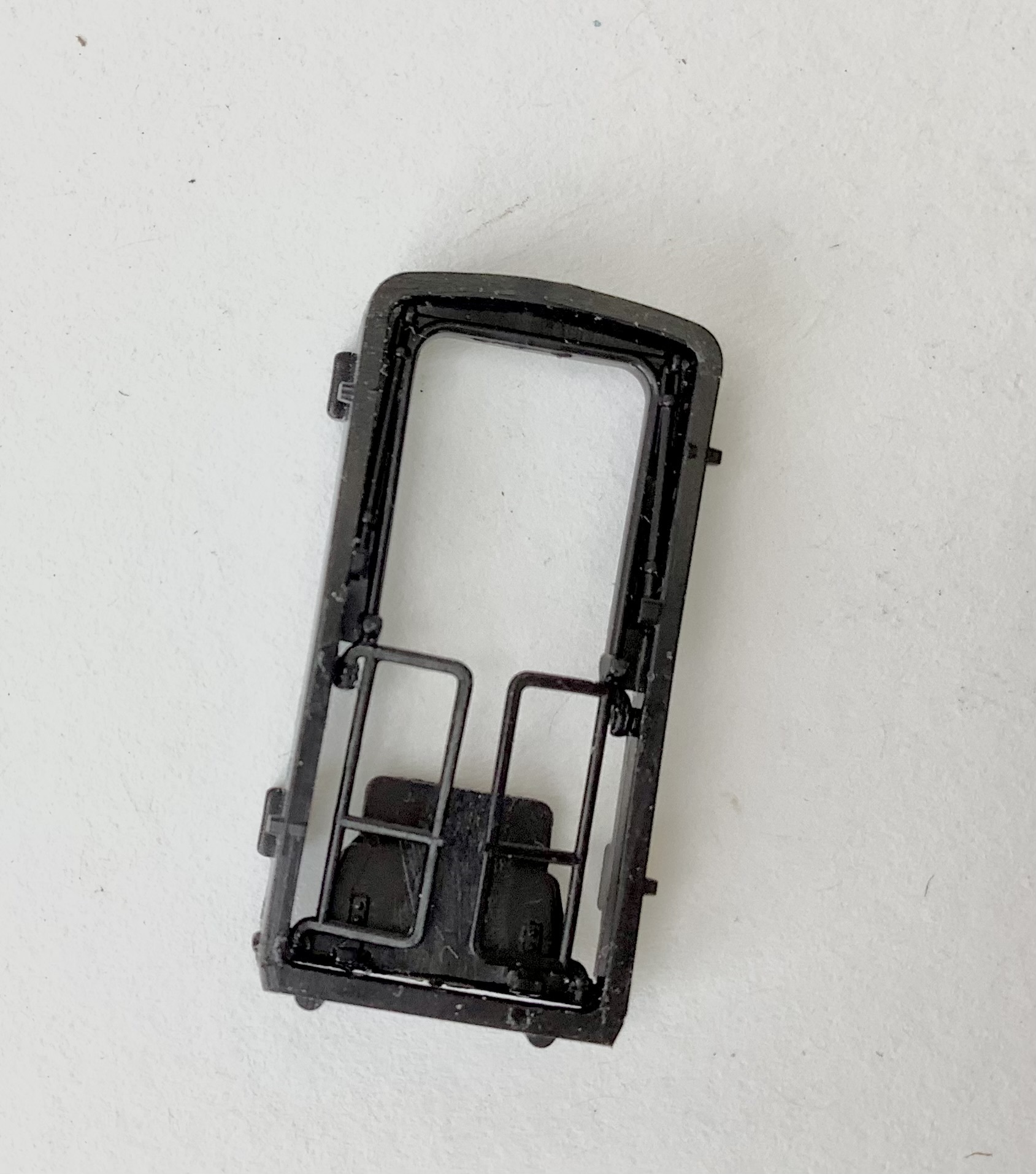 Afgelopen zomer de hitte getrotseerd en wat zitten pielen met een Bolkoprijtuig uit de stal van Roco. Ik heb de bolling van de koppen van het dak wat afgeschuind/wat meer taps toelopend gevijld, plus de dak-kop wat plat gevijld. De waterbakken kregen beiden een vuldop (Philotrain/Phildie). Op de koppen zijn ook lantaarnijzers geplaatst, omdat de rijtuigen bij de bouw in de jaren dertig geen sluitverlichting hadden gekregen. Naast de zwanenhals-vormingen ijzers zaten er ook Franse lantaarnijzers op. Omdat ik die dingen op dat moment nergens kon vinden heb ik m’n toevlucht gezocht bij een stukje messing draad van 0.6 mm, wat ik haaks gebogen heb en het verticale stukje wat vierkant te maken met een tangetje. En dat dus vier keer.