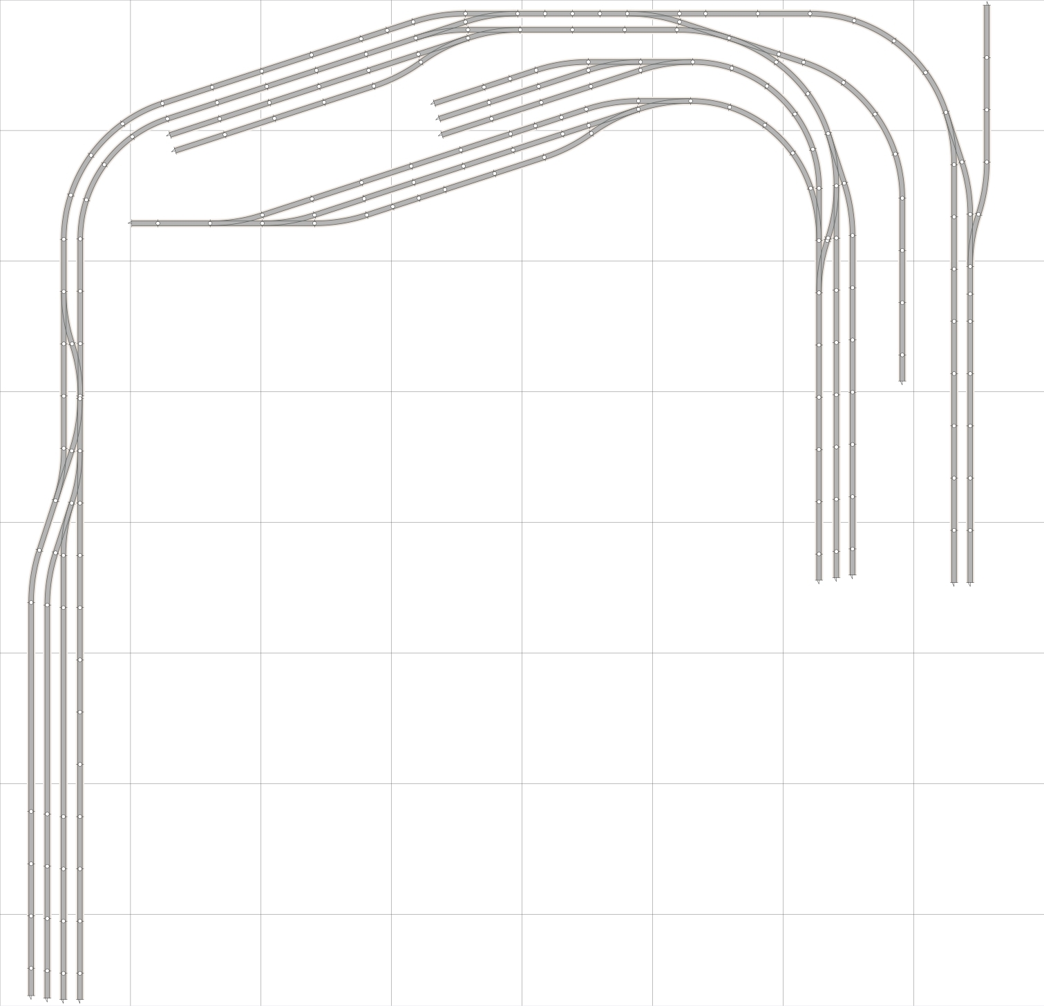 Een gedachte zou ook nog kunnen zijn om de kruising voor het schaduwstation te leggen en de kopsporen bovenin weg te halen. Door de kopsporen heb je twee s-bogen en dat wil weleens problemen opleveren. Zowel de kruising als de s-bogen liggen bijna een meter diep op je baan en zijn daardoor ook moeilijk bereikbaar.