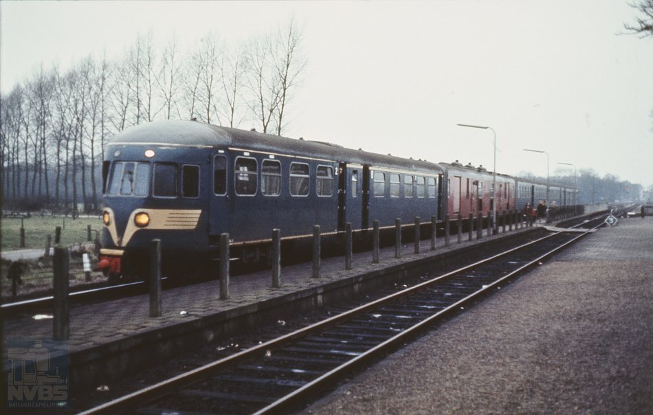 Opmerkingen: In dit nog blauwe treinstel is sinds 21 november 1968 de rode motorwagen mD 181 opgenomen. In de overgangstijd van blauw naar rood kwam dit kleurverschil wel vaker voor omdat de motorwagens af en toe gewisseld moesten worden, bijvoorbeeld voor ondehoud.