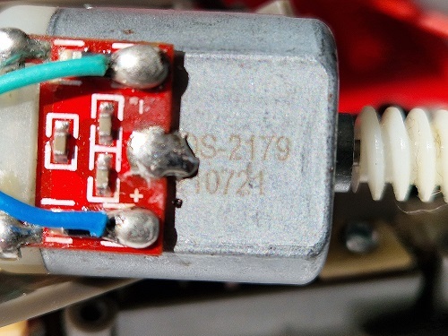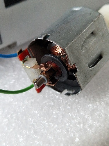 Vervolgens heb ik het motortje deels uit de loc gehaald, zodat er geen weerstand is van de tandwieltjes. Maar ook dan gebeurt er weinig bij stap 1 en 2.