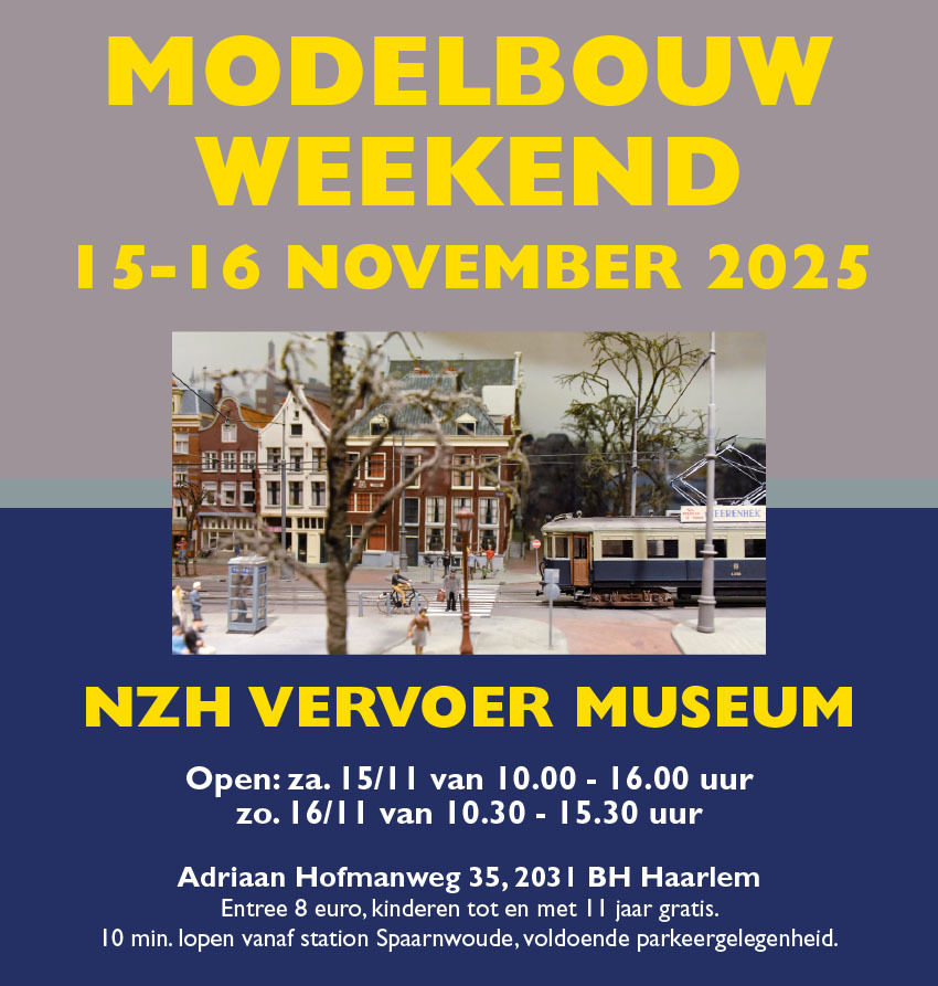 Voor liefhebbers van modelbouw organiseren De Nieuwe Blauwe Tram, het NZH-museum en de NZH Hobbyclub op zaterdag 15 en zondag 16 november 2025 een Modelbouwweekend. Dit weekend vindt plaats in de gebouwen van het NZH-museum en de naastgelegen tramwerkplaats van De Nieuwe Blauwe Tram. De toegang is via het NZH-museum, Adriaan Hofmanweg 35, 2031 BH Haarlem.