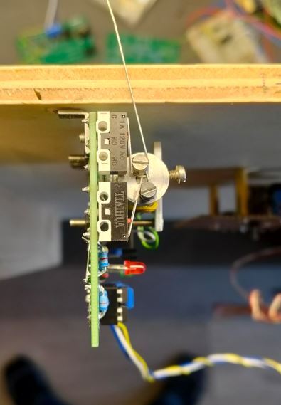 Door nu de hele printplaat over deze schroef een beetje te draaien totdat de wisseltong goed aanlegt en de bedieningsdraad een beetje op spanning staat wordt de ideale positie van de 2e bepaalt. Simpele manier, kan eigenlijk niet misgaan..