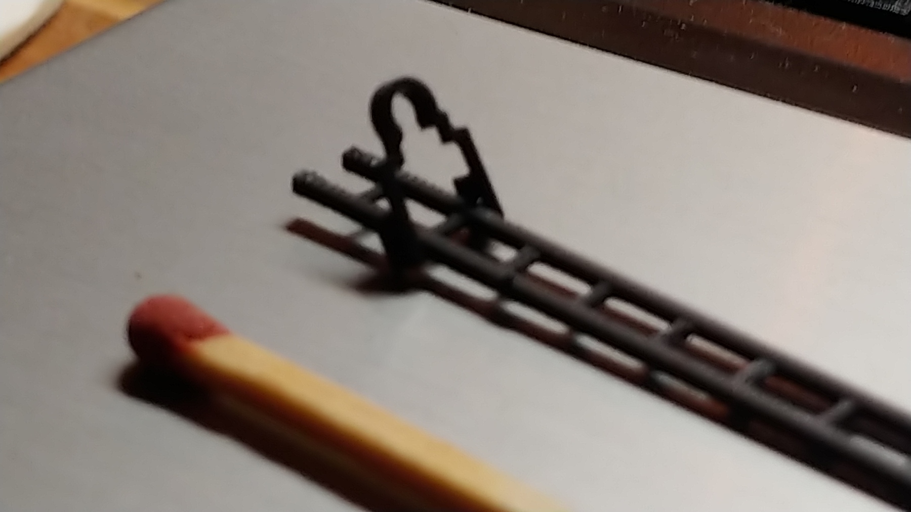 Als je kleine dingen wilt printen moet je weten wat de limiteringen zijn van je printer. Bij mijn resin printer is dat voor korte overspanning zoals een traptrede of het handvat van een olielamp +/- 0,2 mm. Ik teken een heleboel van die kleine prul dingen uit in schaal 1 op 10. De lamphouder in dit voorbeeld is dan een rond van 0,9 mm in mijn tekening. Als de tekening klaar is exporteer ik het als STL. Pas in de sliding software verschaal ik naar 1:45 (in mijn geval). Mocht het dan toch nog te fragiel worden dan kan ik dat ene item altijd aanpassen in de tekening. Zo krijg je een heel goed idee wat je printer aan kan.