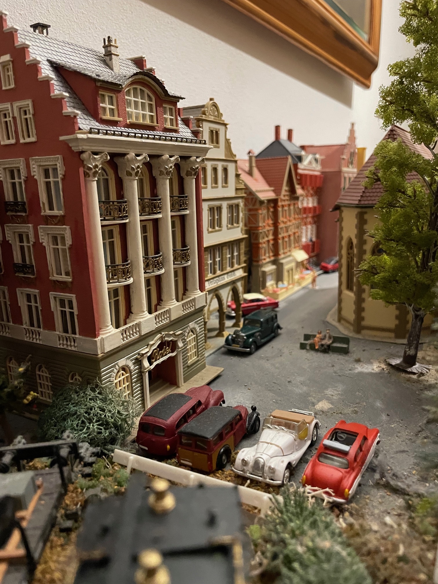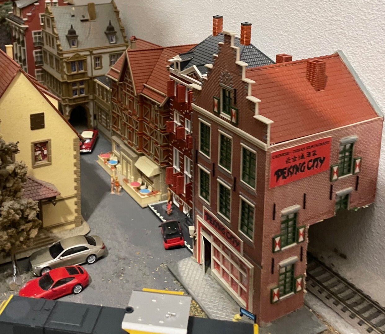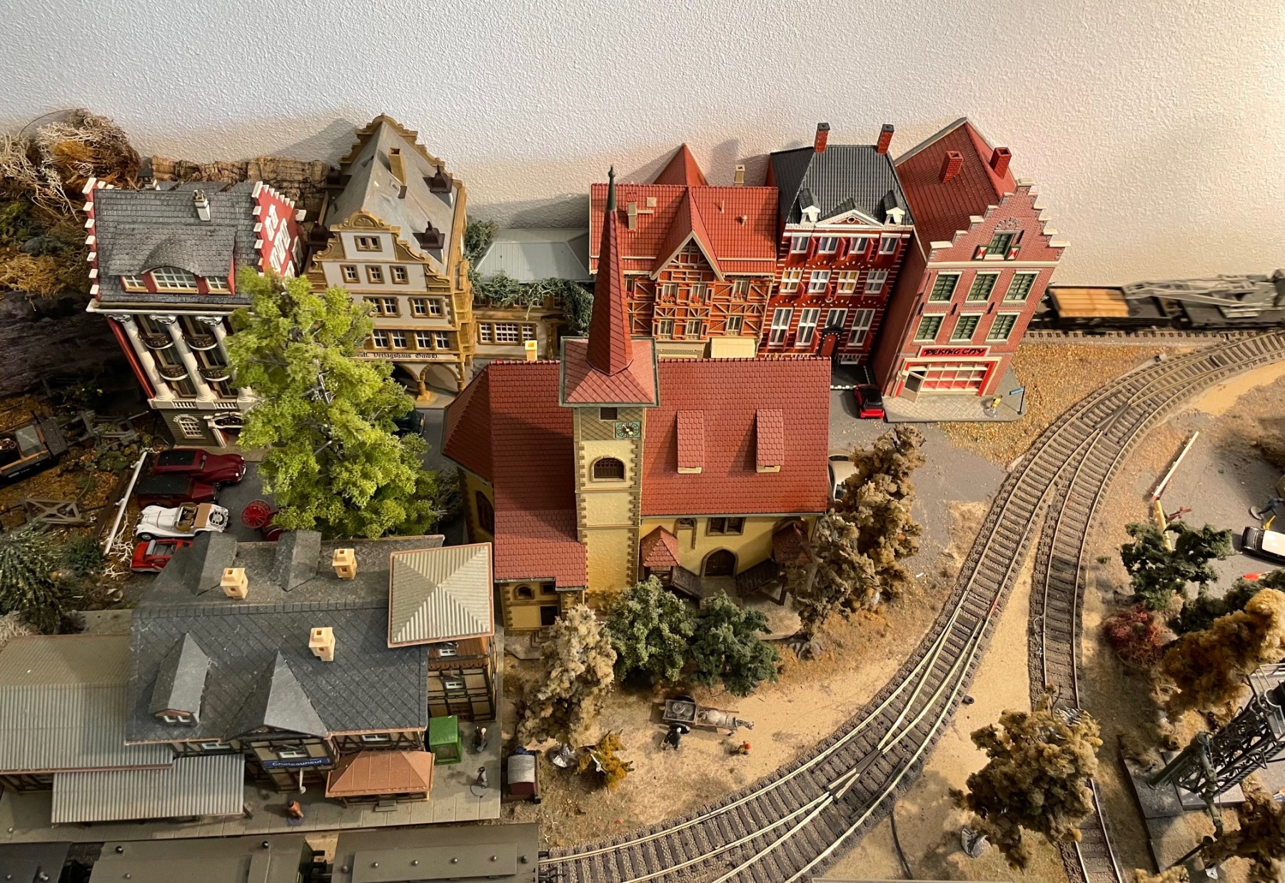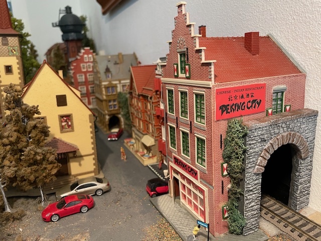 Langs de achterwand loopt een spoortje dat ik tot nu toe door half-reliëf huisjes uit het zicht hield. Die huisjes had ik zo gekocht en ik vond het wel praktisch.