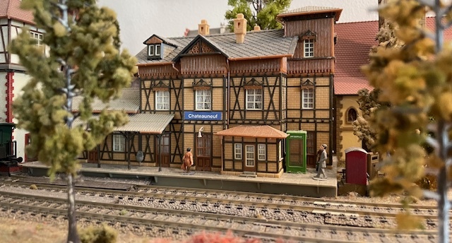 Daarna heb ik het rijtje vervangen door een rijtje kleine vakwerkhuisjes. Ook weer met het spoor er achterlangs.