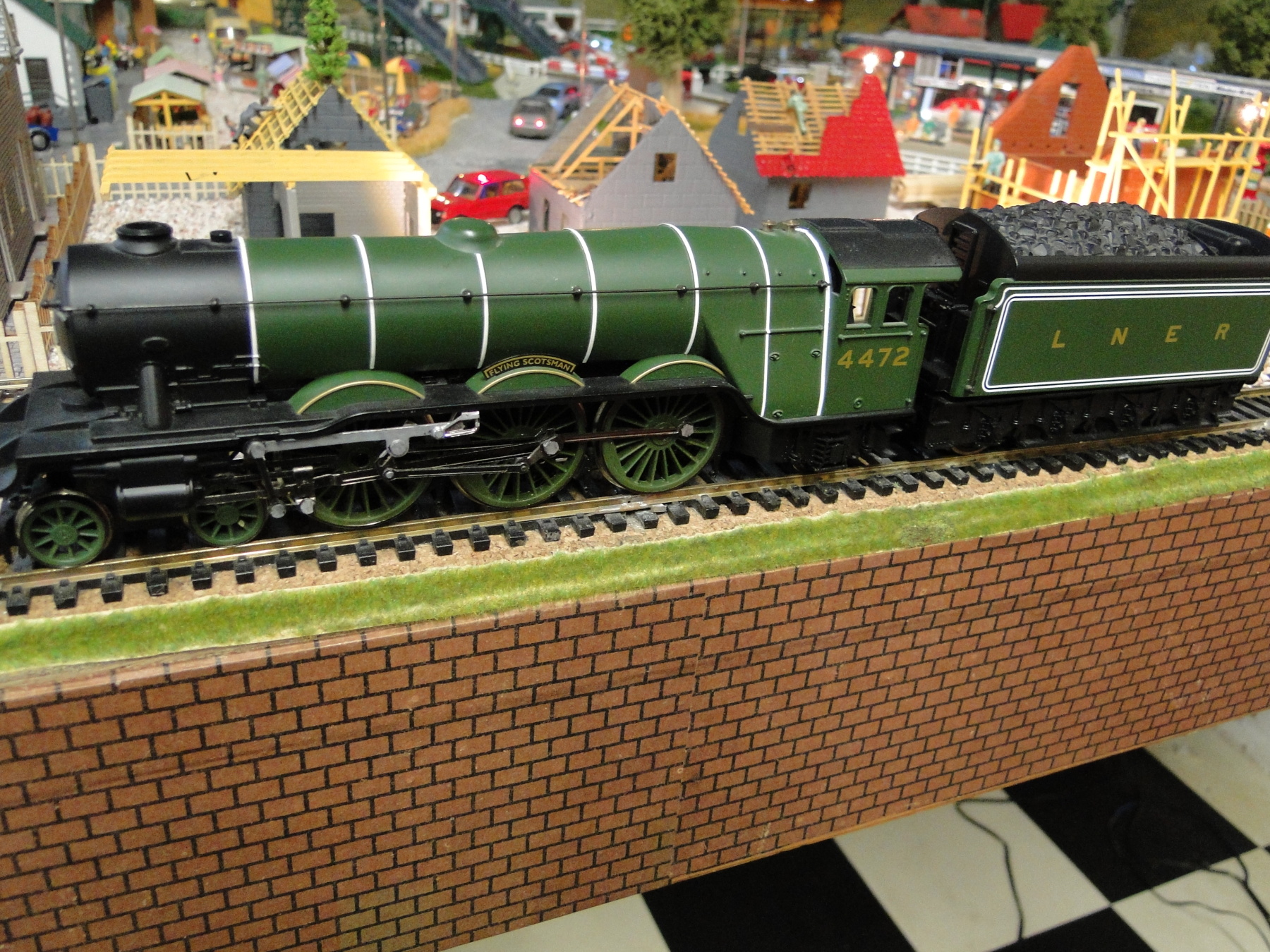 Dacht ik ook, maar de tender op de foto (met loopstel) lijkt niet op de tender die bij het lok aangedreven model zit: http://www.britishrailwaystories.com/2013/03/flying-scotsman-railroad-model-2012.html
