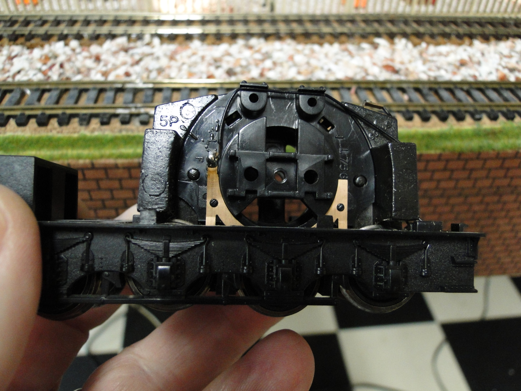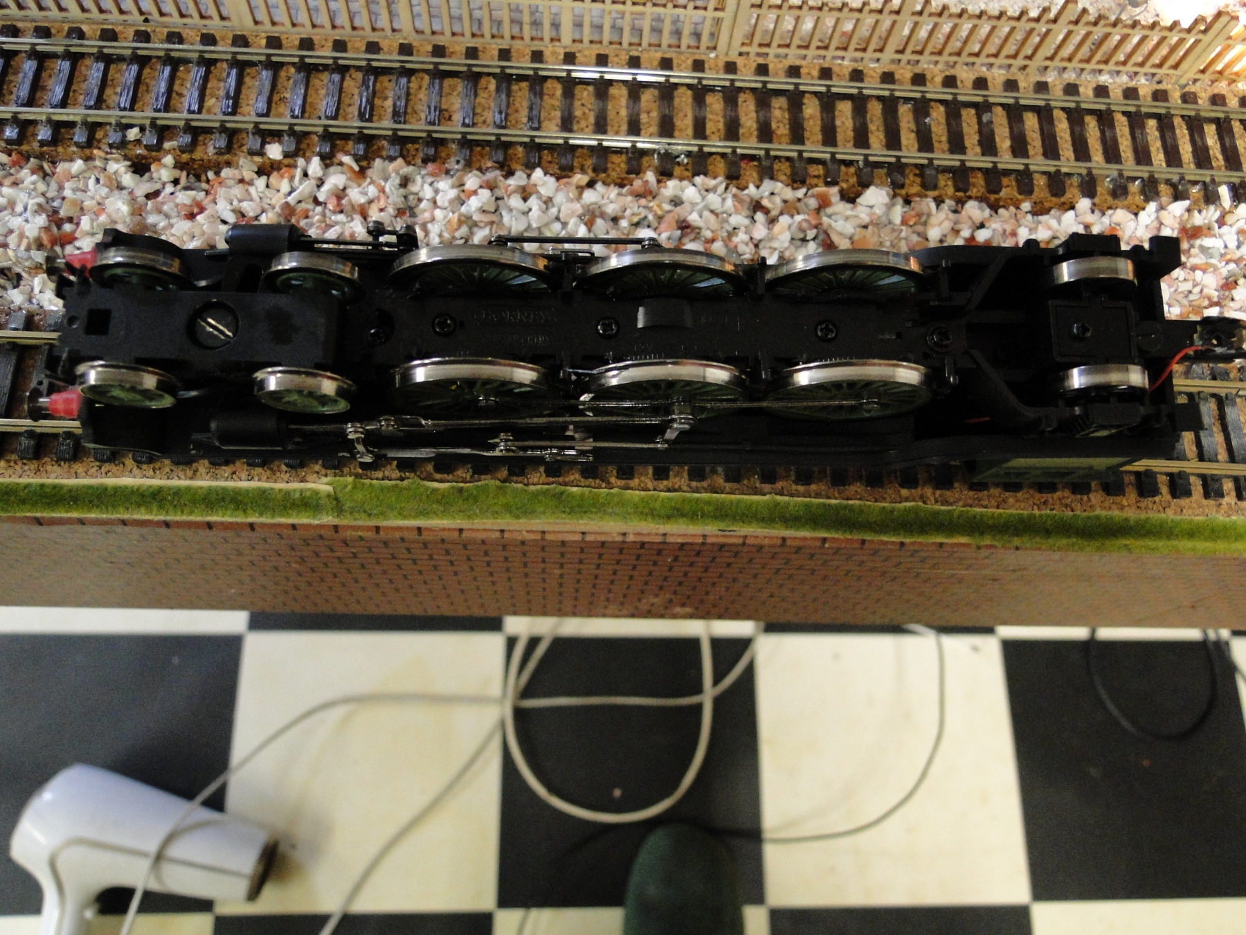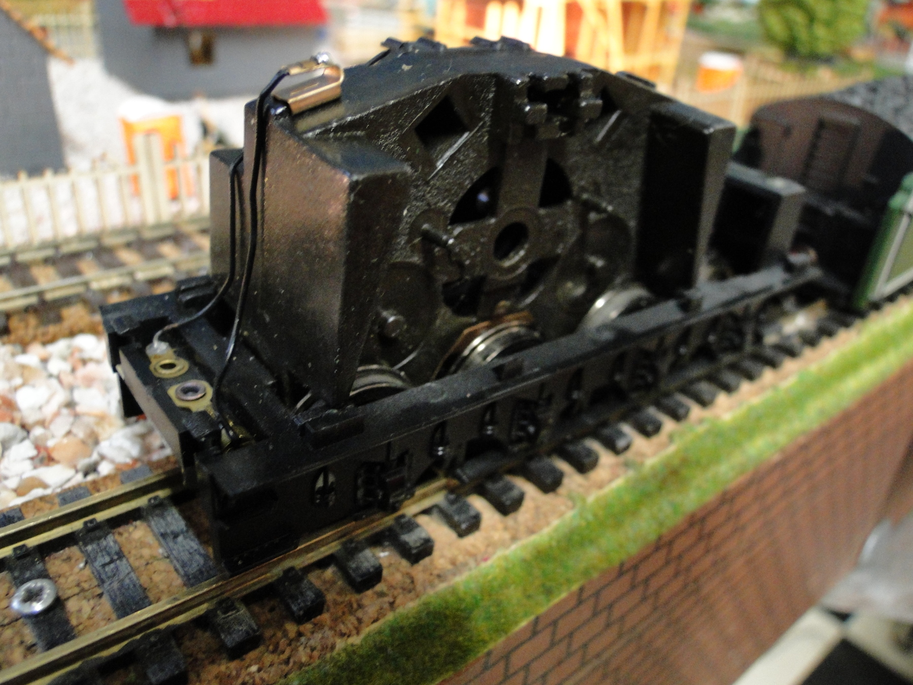 Hornby heeft de aandrijving in het model rond de eeuwwisseling verplaatst van de tender naar de lok. Maar wel zo lui geweest om tender hetzelfde te laten maar de motor eruit te halen.