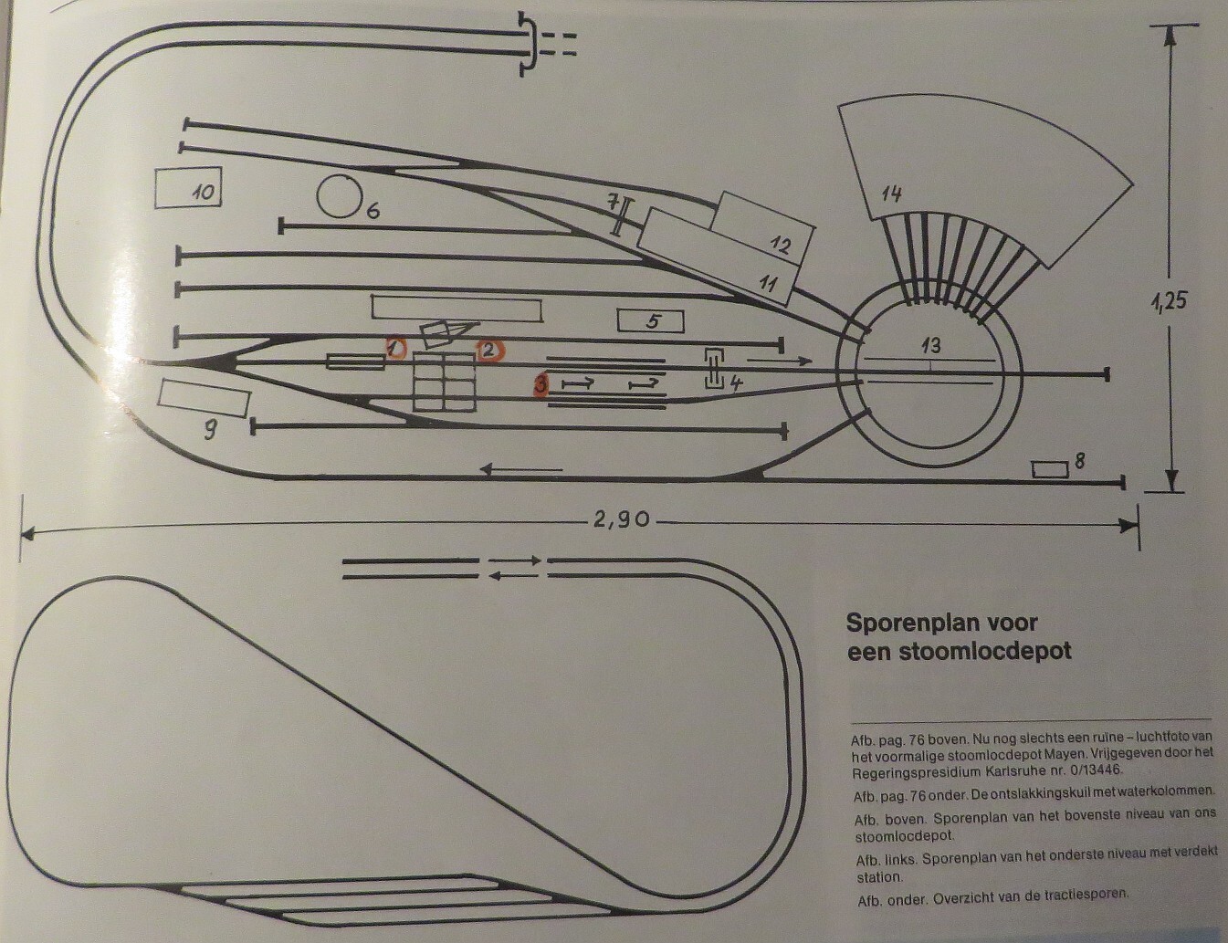 In een oude Faller 'brochure' (nr 842; Modelbouw makkelijk gemaakt) staat een baanplan van een stoomdepot en tevens foto's van het gerealiseerde plan. Het baanplan is vrij gedetailleerd - ook heel gedetailleerd beschreven- en past op een oppervlak van 2.90 m x 1.25 m.