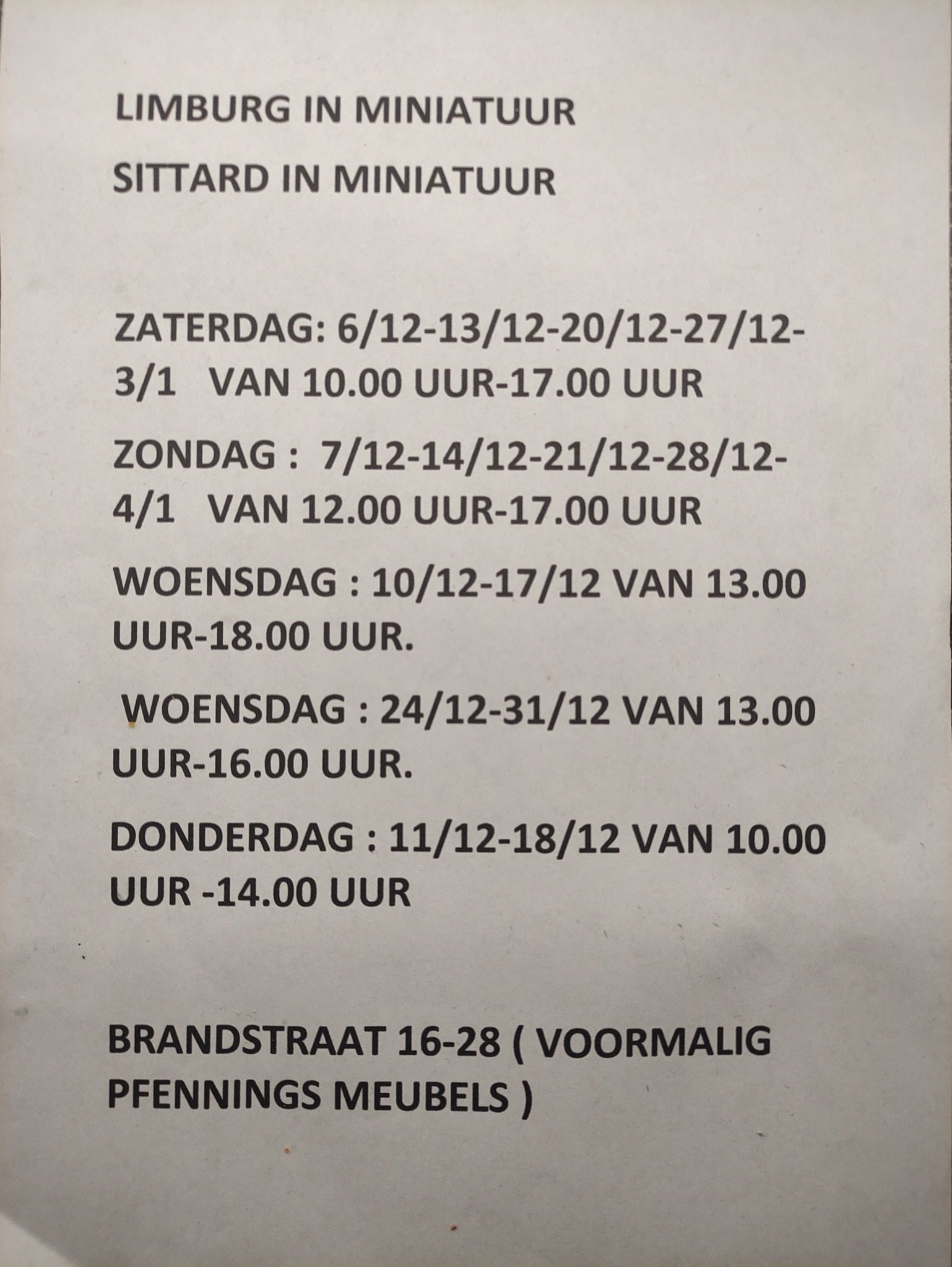 Ook wij als Limburg in Miniatuur waren uitgenodigd. Maar door de afstand en de leeftijd van ons beiden nemen we niet meer deel aan modelspoor evenementen. Momenteel zijn we bezig met de voorbereidingen van de expositie tijdens Sittardse Kerststraatjes. Hier hebben we een week de tijd om op te bouwen, dus dat kunnen we op een rustige manier doen.