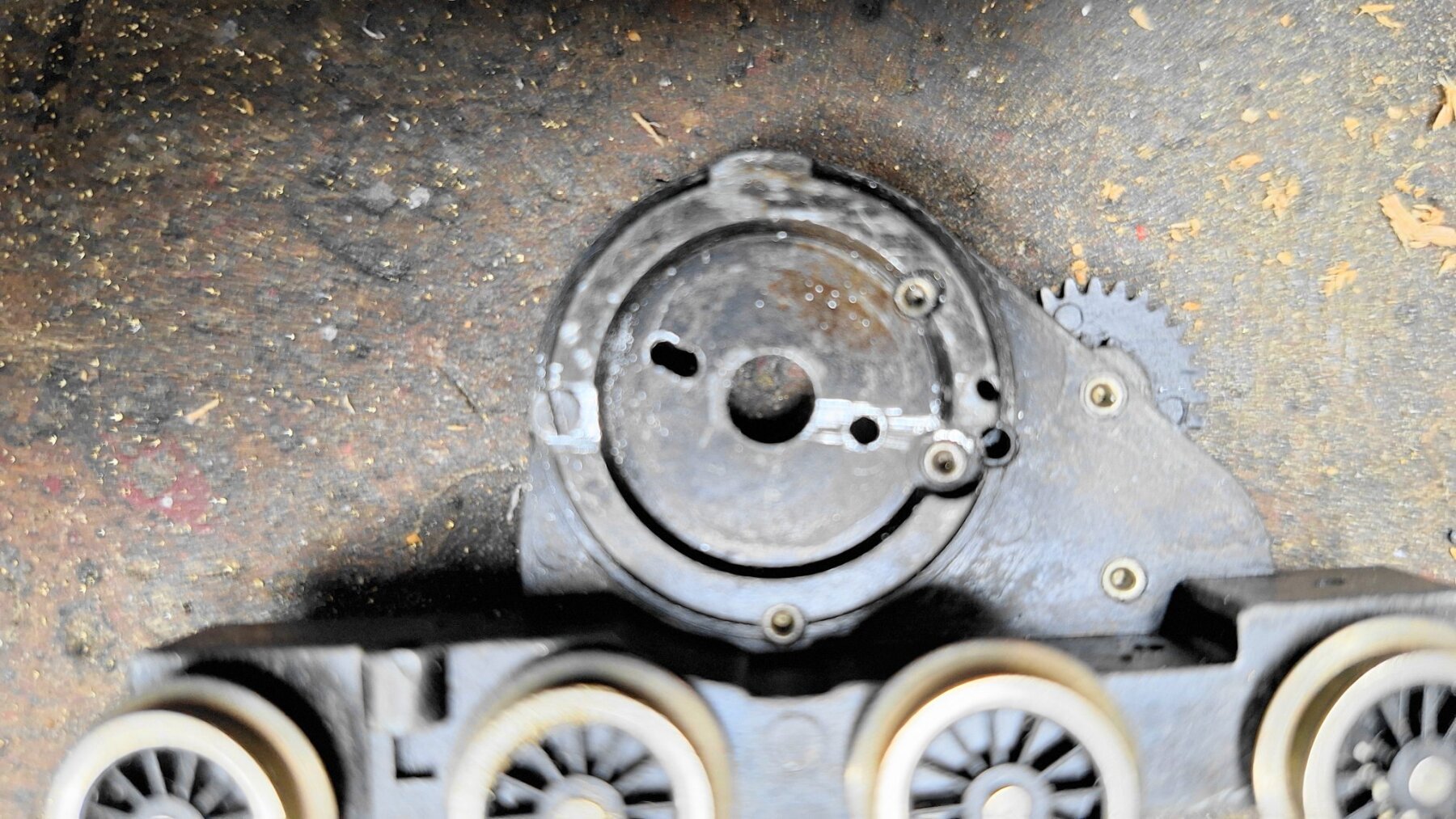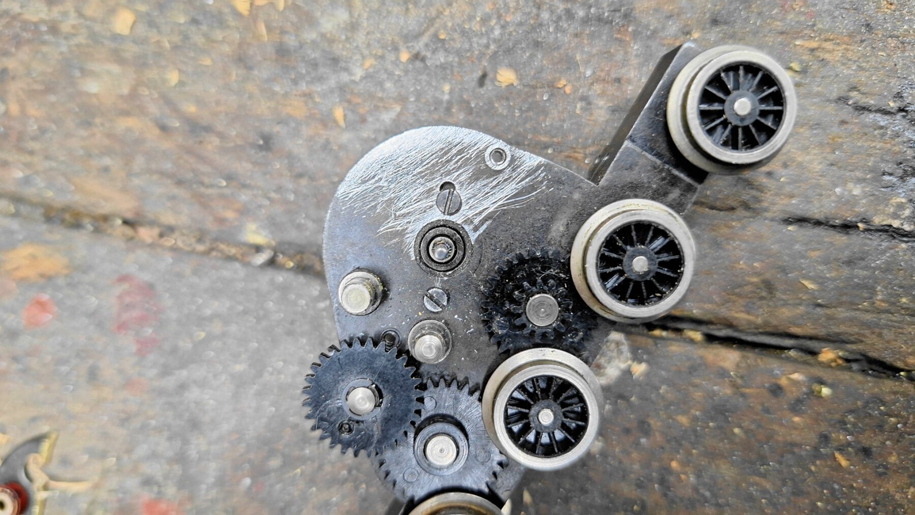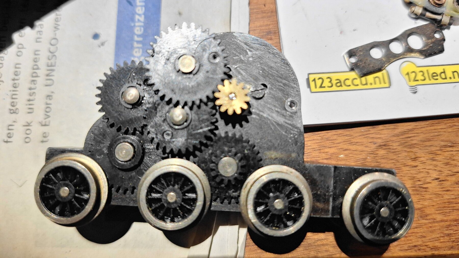 Dan het motortandwiel op de as gelijmd met wat secondelijm.