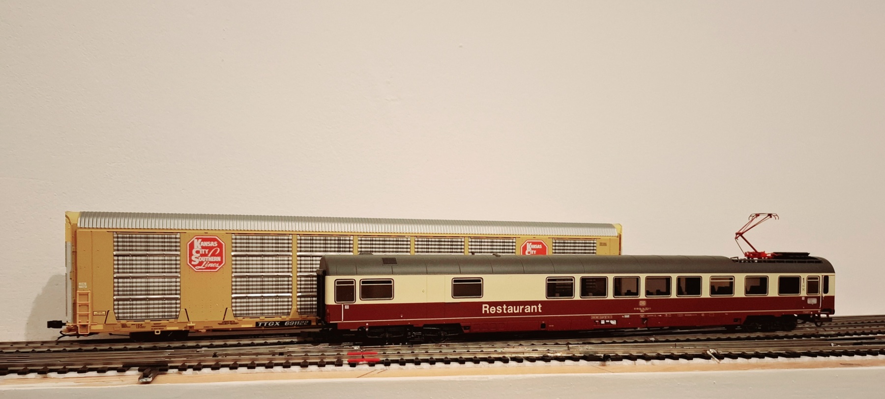 Zelf gebruik ik rijtuigen in exact 1:87. Die zijn wat langer dan jouw DDM, nl. 303 mm. Zeker in krappe bogen zoals jij gebruikt kan dat uitmaken. Let ook op, als je dubbelspoor hebt: kunnen ze elkaar dan op alle punten passeren?