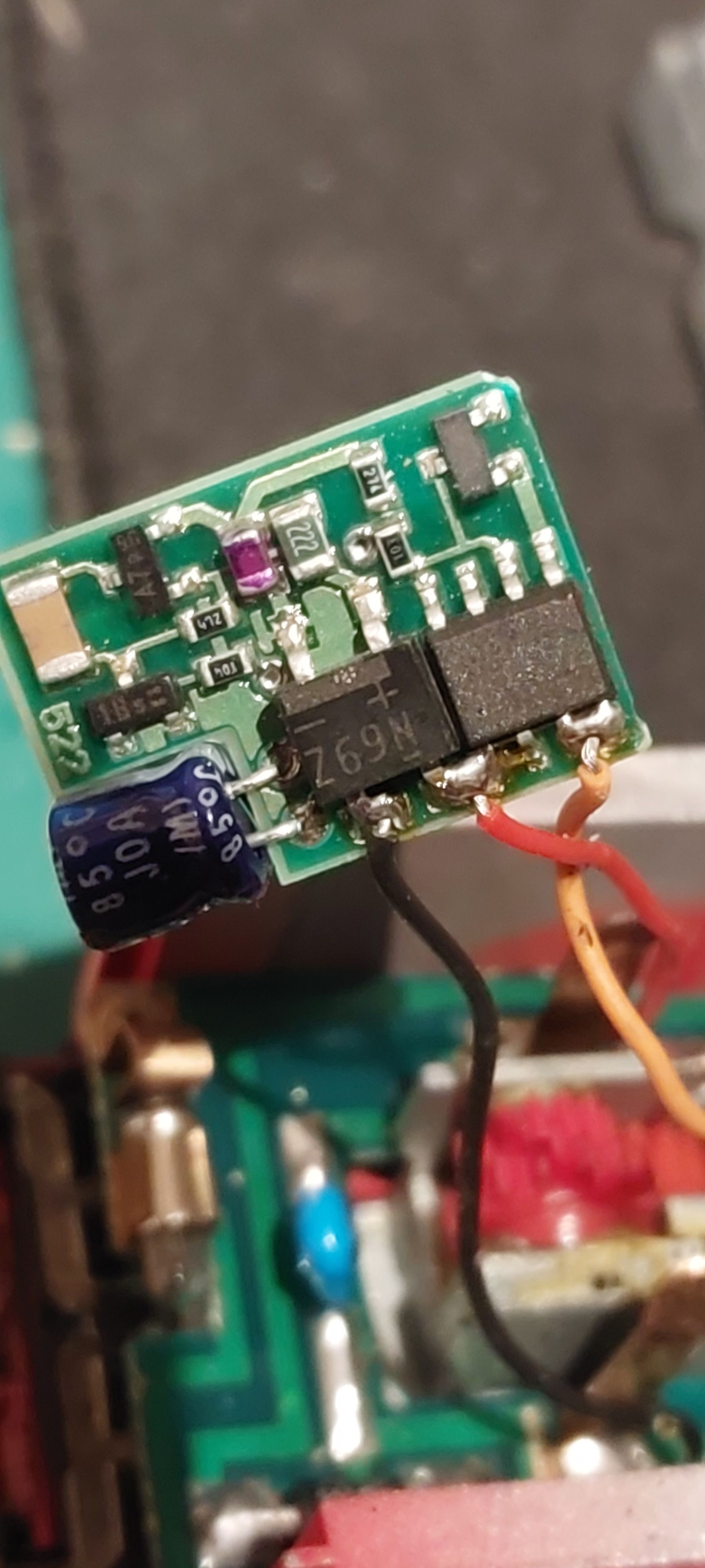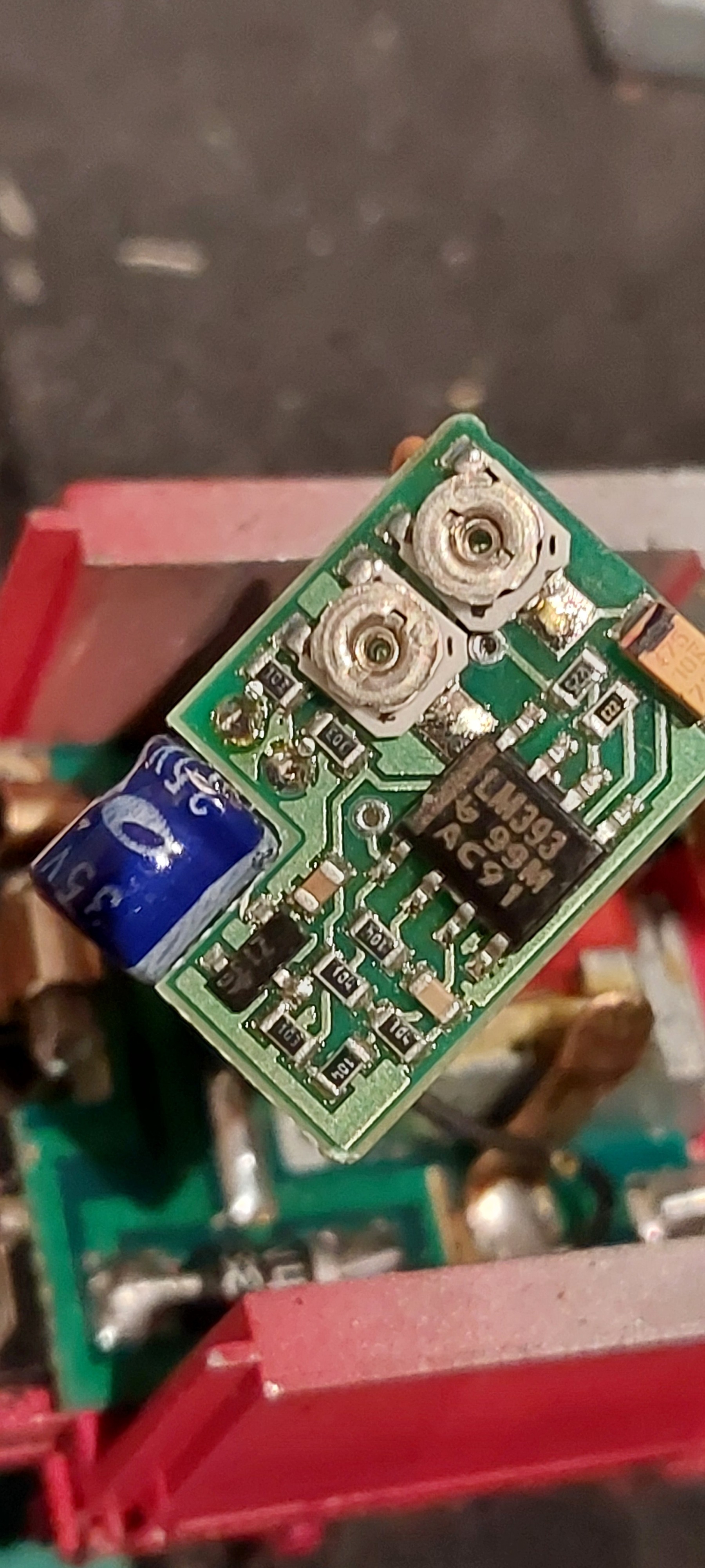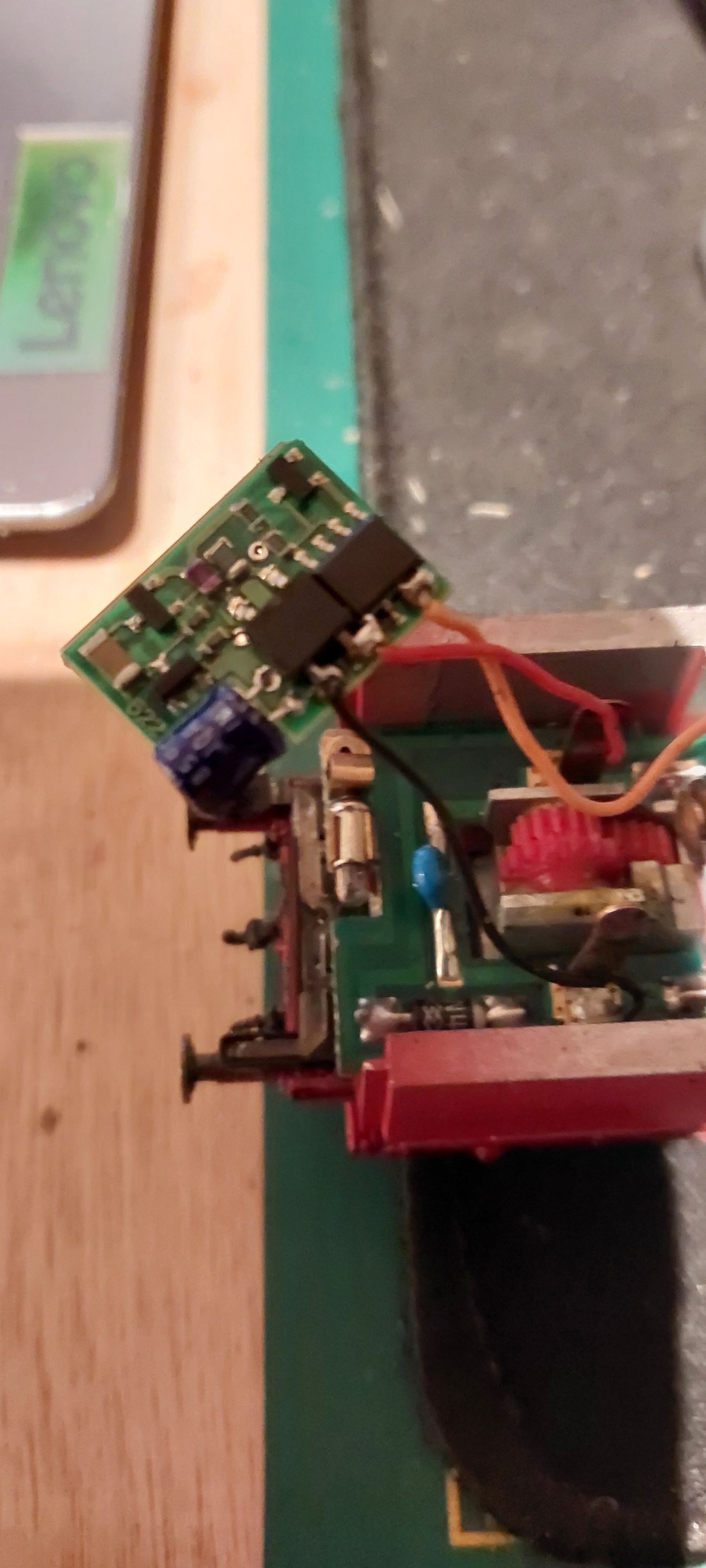 Tja, heb ik weer. Koop je een loc die digitaal is voorbereid en wil je er een decoder instoppen kom ik onderstaand "ding" tegen die er is ingebouwd. Wie weet wat het is? De Sprog 3 kende het niet en gaf een kortsluiting aan op het spoor.