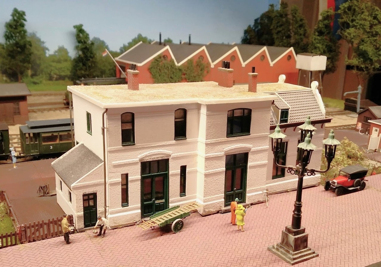 Ik heb voor mijn station toch voor een bouwpakket gekozen. Het is van de week binnen gekomen. Van het weekend maar eens puzzelen. Vraag: weet iemand de kleurstellingen van het oude station steenwijk? De foto's zijn niet allemaal even duidelijk. Het gebouw zal wel een gebroken wit zijn, maar deuren, kozijnen en vensterbanken vind ik last in te schatten. Mijn baan is in periode V, dus ik ga ervan uit dat het oude station nooit is afgebroken en vervangen door het huidige gedrocht. Ik hou daarom wel de witte kleurstelling aan, omdat dat de laatste is.