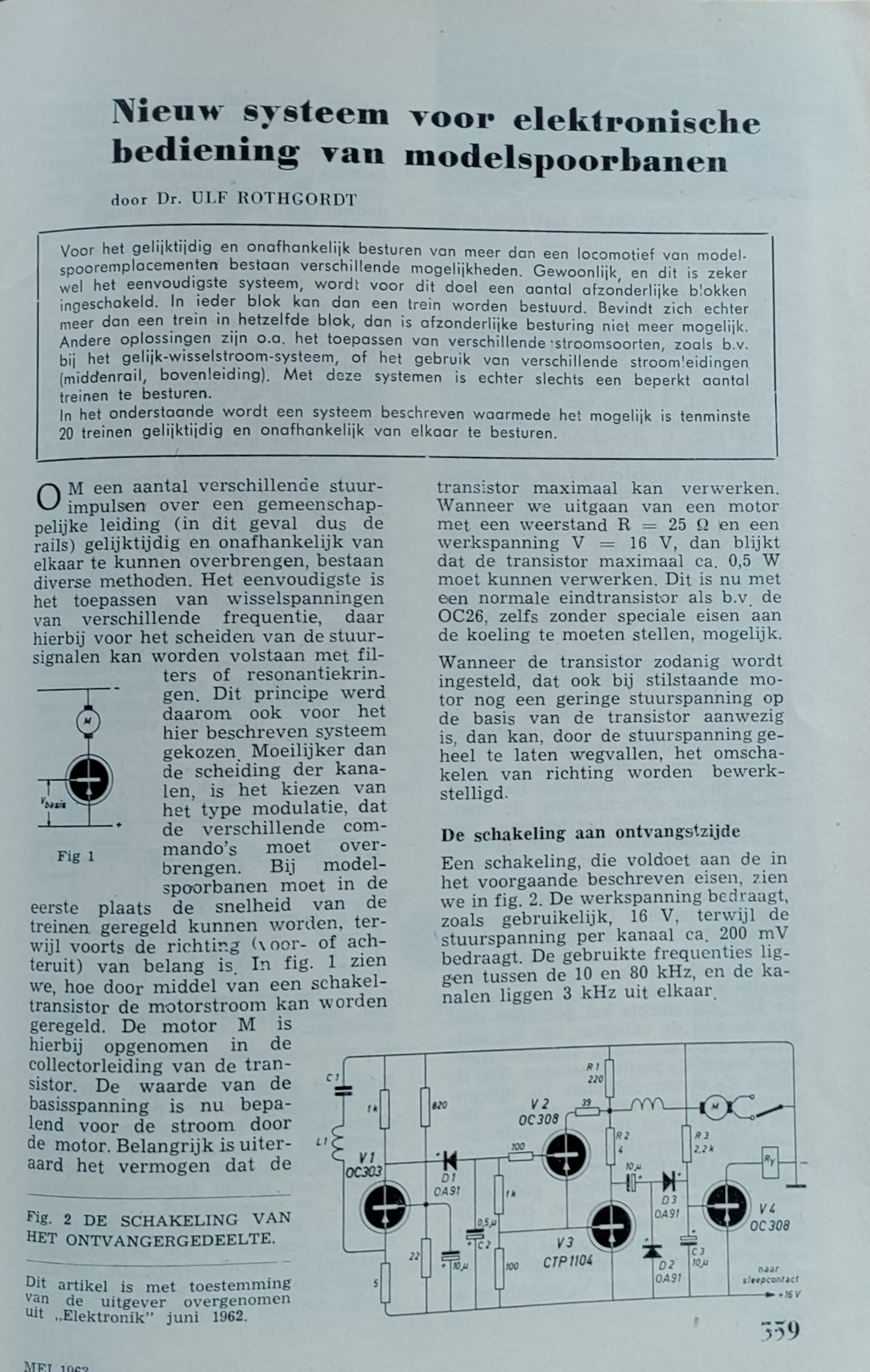 Werken met verschillende frequenties en dan scheidingsfilters in de ontvangers was toen heel gebruikelijk bij RC-besturing. Later zijn er ook wel commerciële versies voor treinbesturing verschenen. De naam Salota staat me bij. Jouef Telecommande was er ook eentje. Allemaal met transistors en nooit met veel succes.