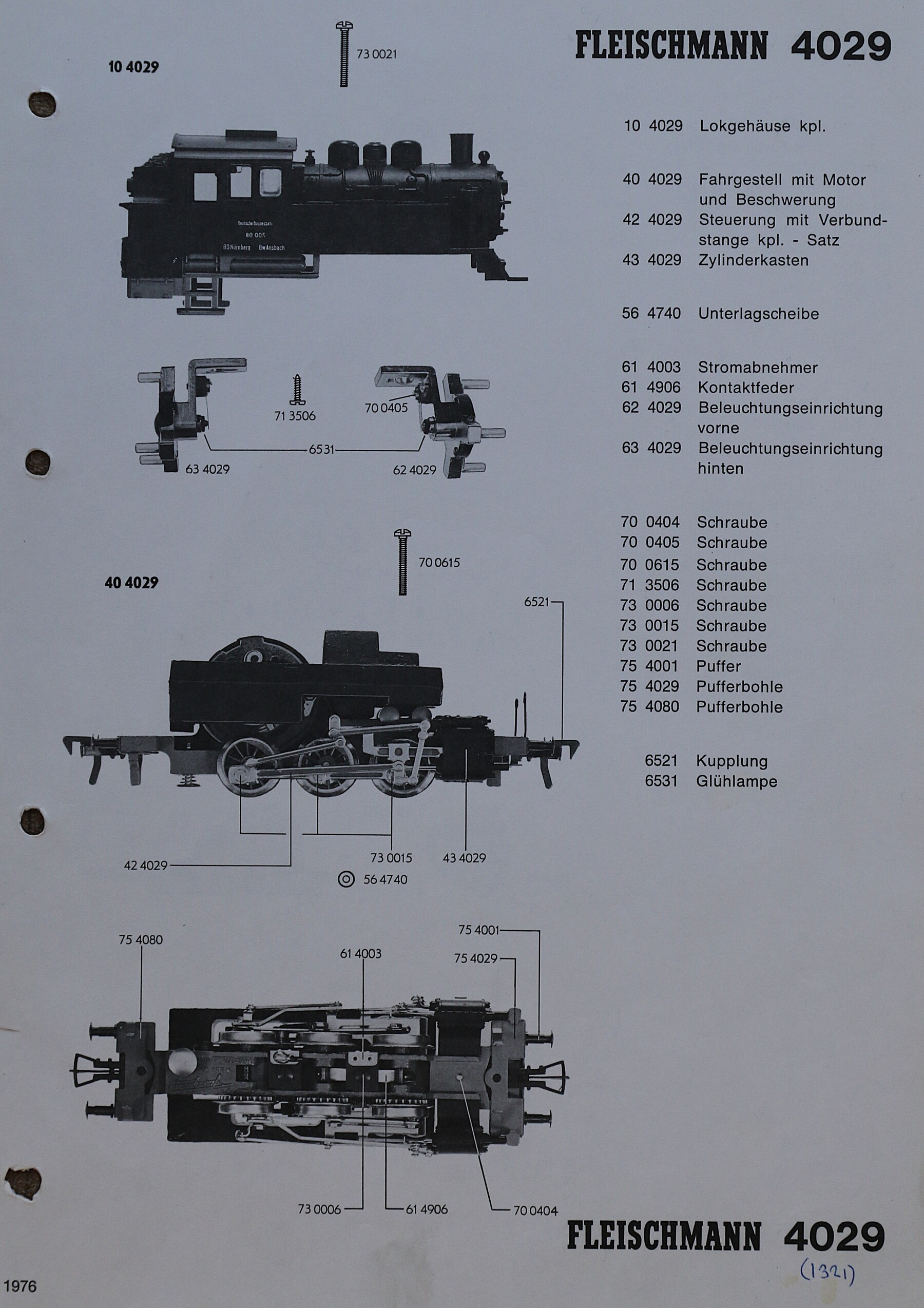 Wellicht dat iemand een originele Fleischmann onderdelenlijst heeft, zodat dat me verder helpt.