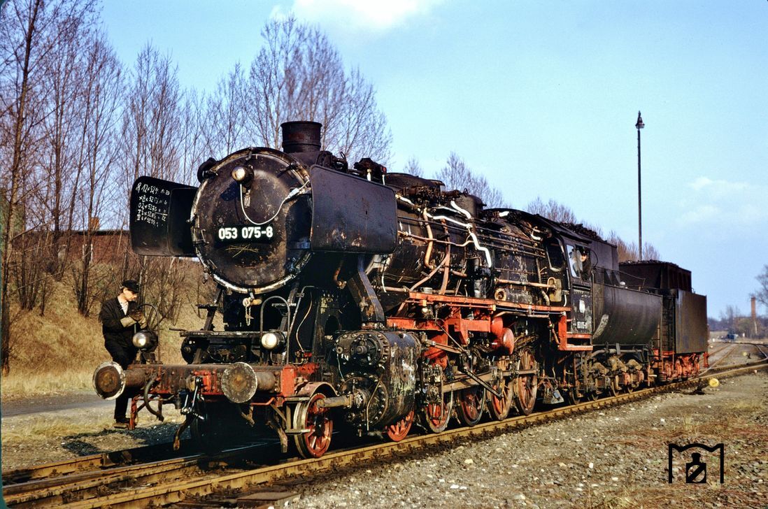 Ankunft der 053 075-6 nach einer Probefahrt im Aw Braunschweig. (06.03.1975) Foto: Dr. Uwe Knoblauch