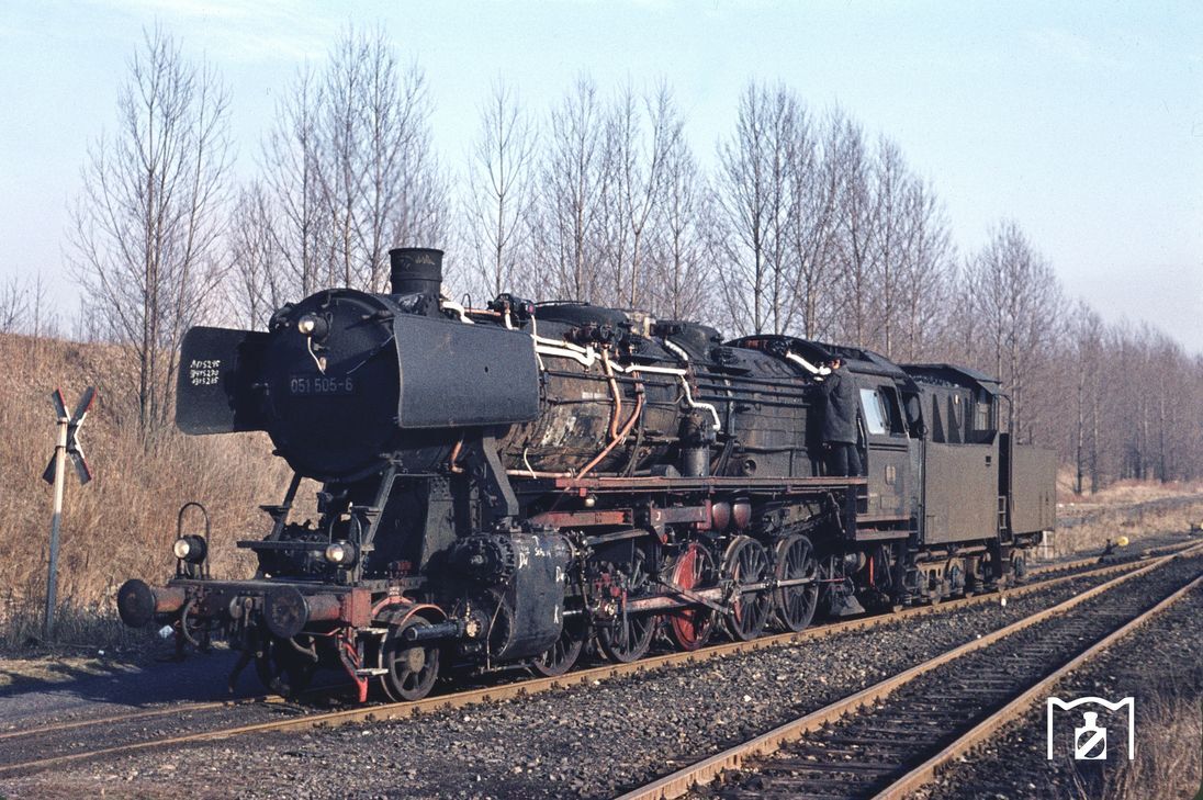 Nach erfolgter L0.0-Ausbesserung macht 051 505 (Bw Lehrte) ihre erste Probefahrt im Aw Braunschweig. (31.01.1974) Foto: Dr. Uwe Knoblauch