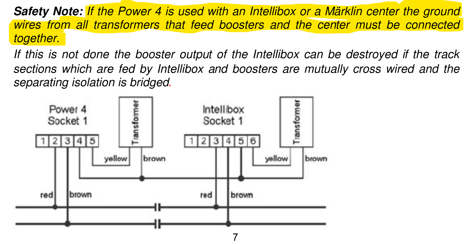 Dus common ground van de boosters aan elkaar knopen met enkelvoudige scheiding tussen de boostersecties op de rails en de bruine draden van de Trafo's aan elkaar knopen en de centrale dubbelzijdig isoleren van de rest