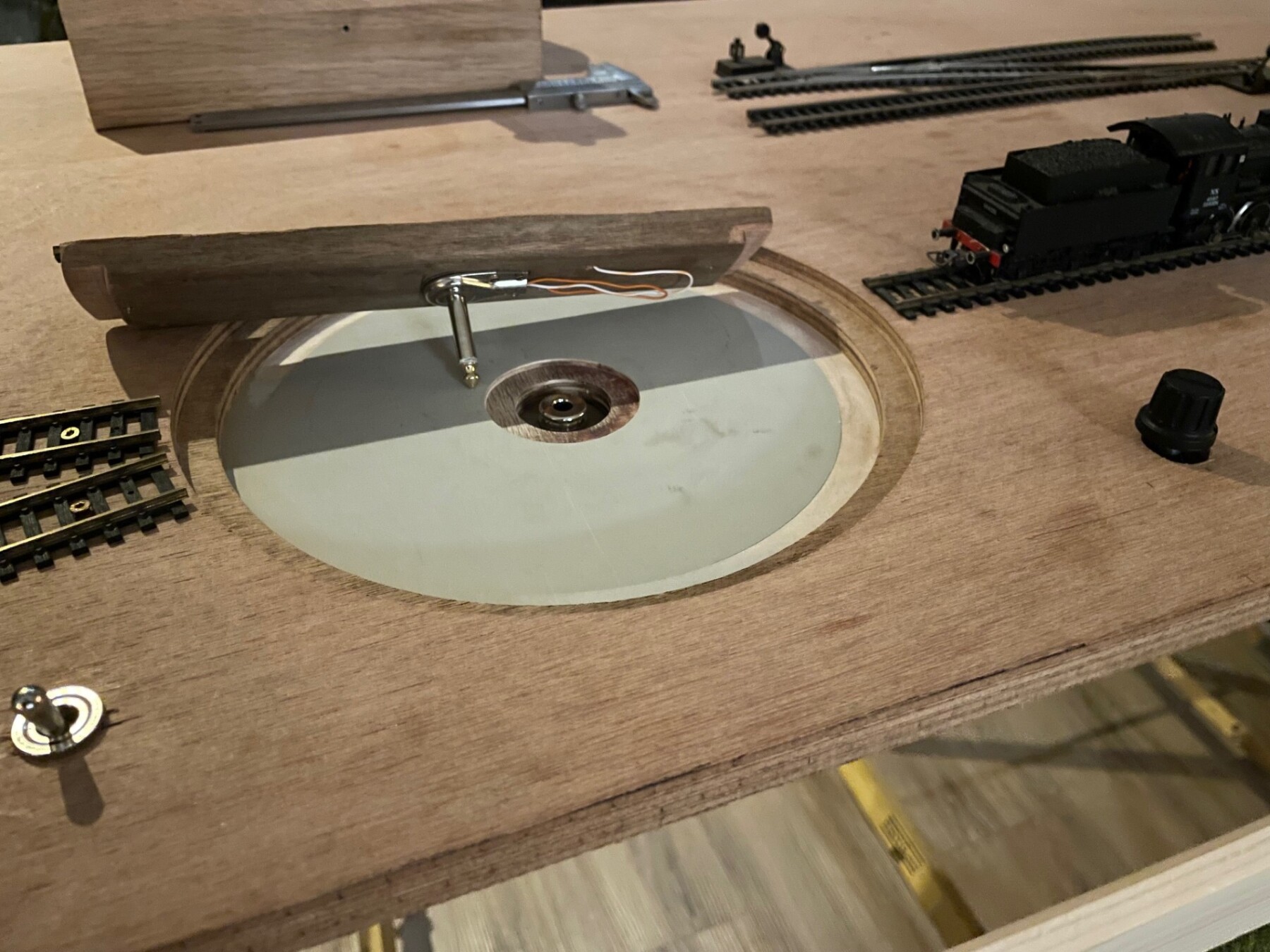 Toen ik vroeger met treinen reedt hebt ik ook geprobeerd een draaischijf te bouwen en dat is mislukt.