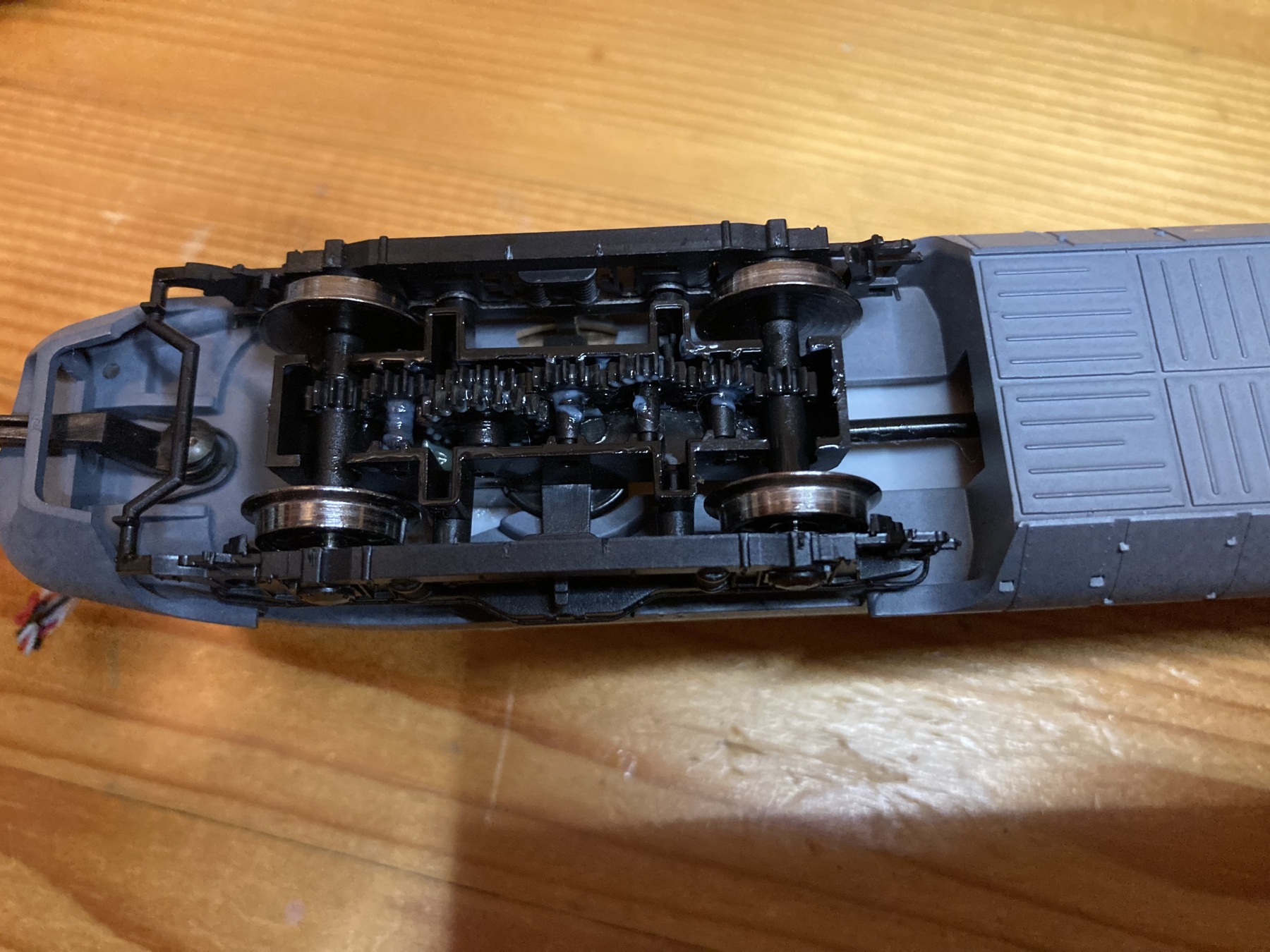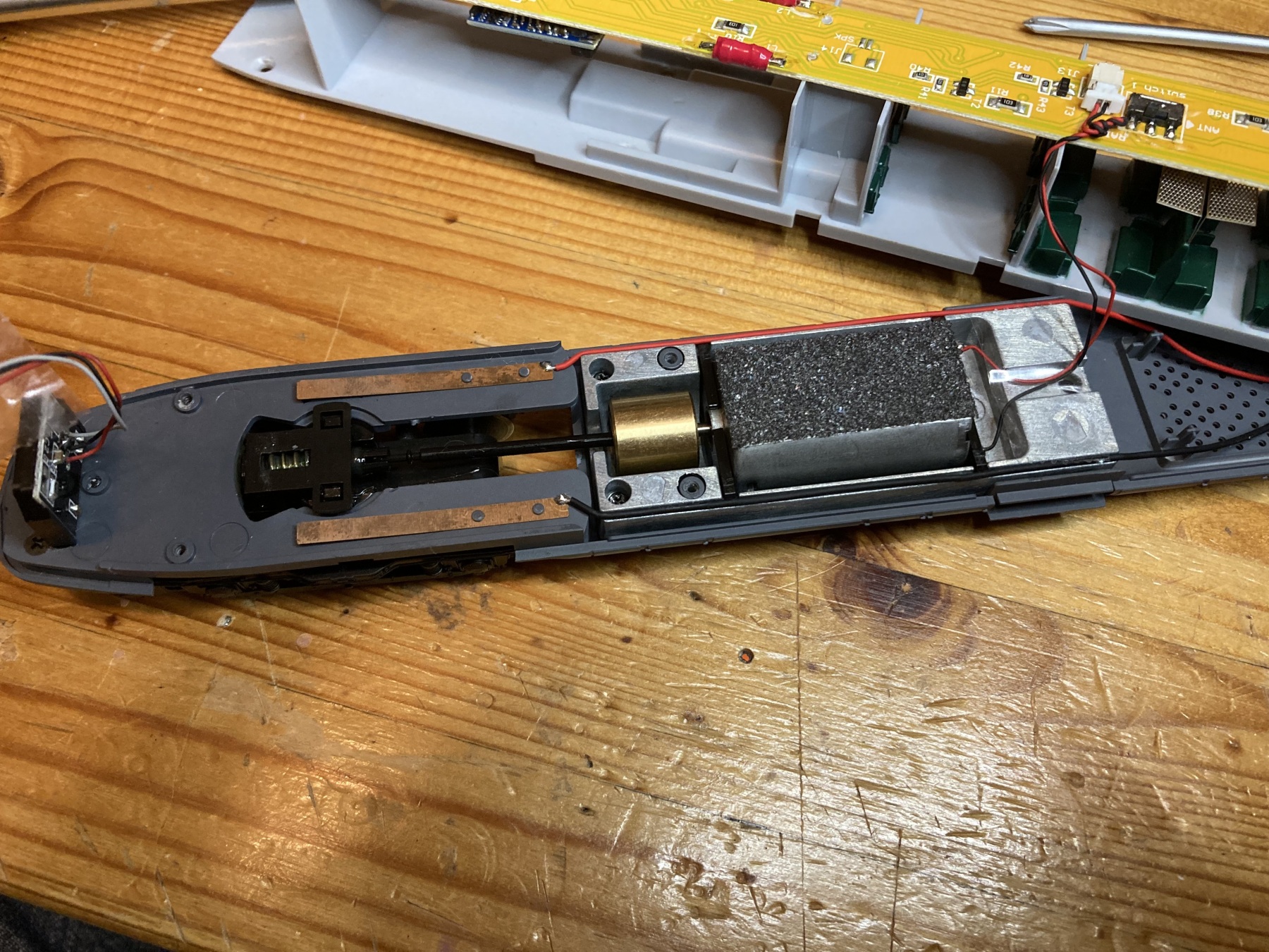 Ik vermoed toch een defect. Het model heeft vaak prima gereden. Durf te aandrijving nog niet verder te ontmantelen. Weet niet precies wat hoe in elkaar klikt. Maak liever niets stuk, want veel hoop op reserveonderdelen heb ik niet.